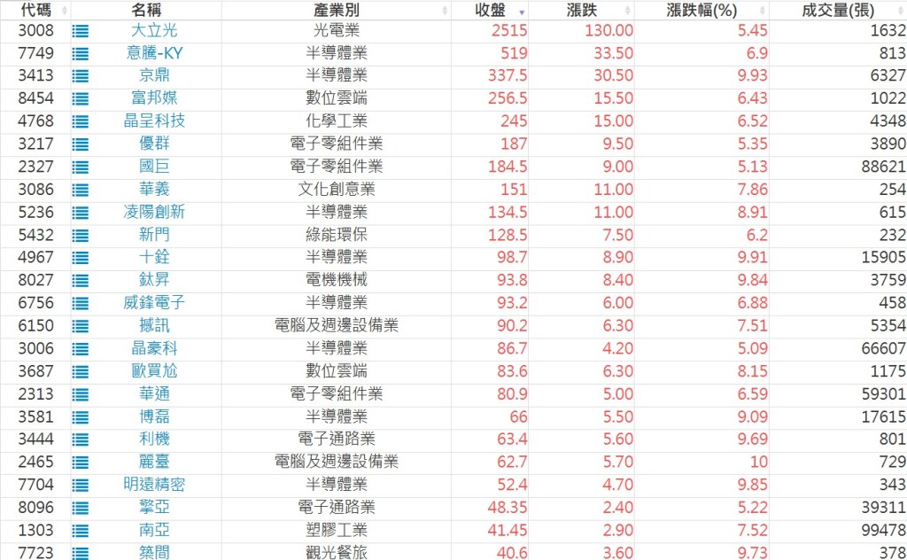 2025-1007日新高爆量上漲股 2025-10-07 股狗網小編 選股條件 發表留言 利用股狗選股的選股條件可以【挑選突破20日新高,爆量上漲起漲點股票】 1.股狗選股 https://www.stockdog.com.tw 2.選股條件: a.收盤價創20日新高 b.當日漲幅 > 2% C.成交量大於5日均量2倍 免責宣言 本網站文章所提供資訊僅供參考,並無任何推介買賣之意,投資人應自行承擔交易風險。 分享此文: 按一下即可分享至 X(在新視窗中開啟) X 按一下以分享至 Facebook(在新視窗中開啟) Facebook 喜歡 正在載入...