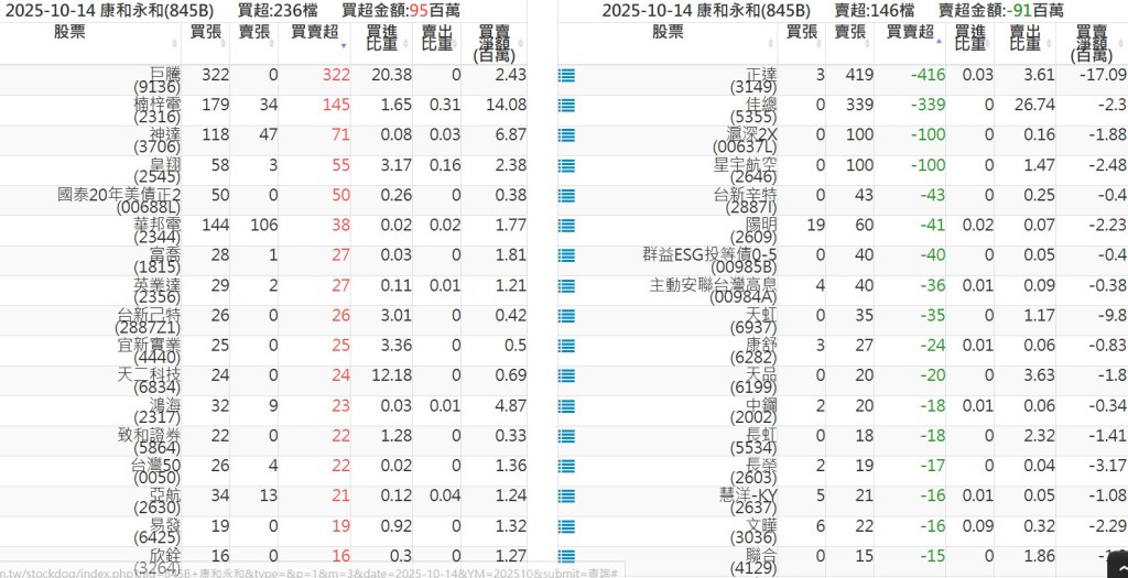 2025-1014關鍵券商買賣超 2025-10-14 股狗網小編 籌碼面每日資訊 發表留言 關鍵券商買賣超: 臺銀證券(1040): 台灣摩根士丹利(1470): 凱基台北(9268): 凱基信義(9216): 元大土城永寧(9875): 康和永和(845B) : 富邦建國(9658): 免責宣言 本網站文章所提供資訊僅供參考,並無任何推介買賣之意,投資人應自行承擔交易風險。 分享此文: 按一下即可分享至 X(在新視窗中開啟) X 按一下以分享至 Facebook(在新視窗中開啟) Facebook 喜歡 正在載入...