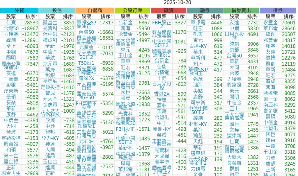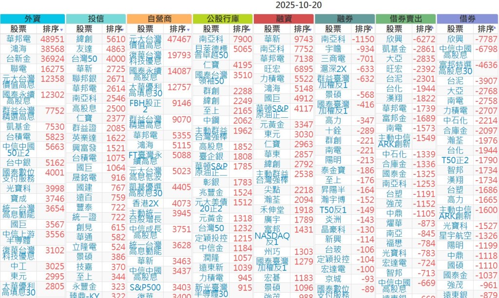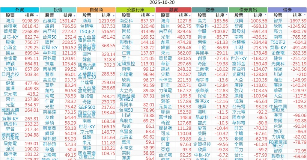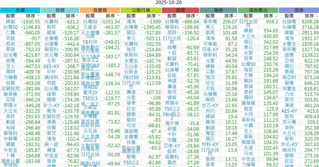 2025-1020【外資、投信】買賣超個股 2025-10-20 股狗網小編 投資誌-大盤 發表留言 上市:【外資、投信】買超(依金額) (單位:百萬) 上市:【外資、投信】賣超(依金額) (單位:百萬) 上市:【外資、投信】買超(依張數) (單位:張數) 上市:【外資、投信】賣超(依張數) (單位:張數) 免責宣言 本網站文章所提供資訊僅供參考,並無任何推介買賣之意,投資人應自行承擔交易風險。 分享此文: 按一下即可分享至 X(在新視窗中開啟) X 按一下以分享至 Facebook(在新視窗中開啟) Facebook 喜歡 正在載入...