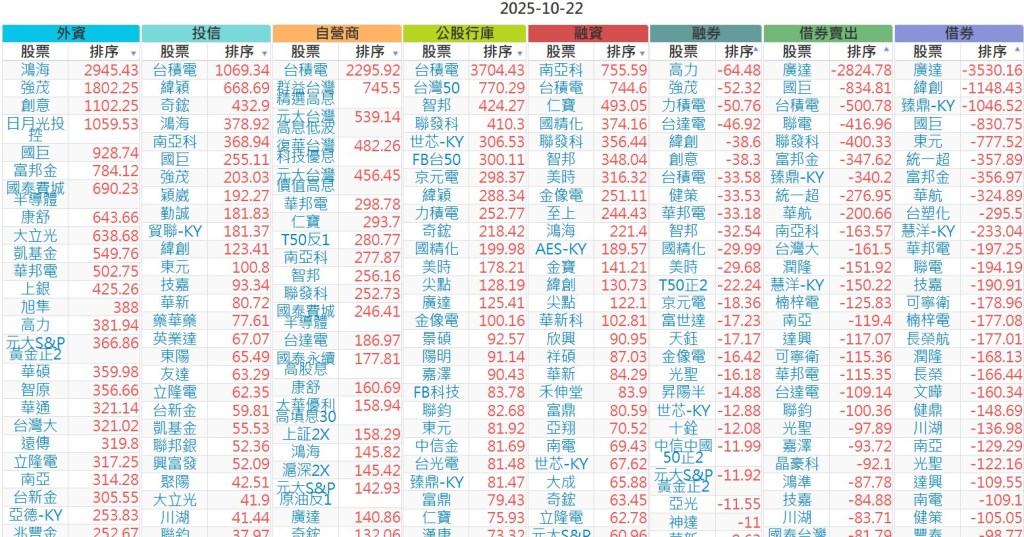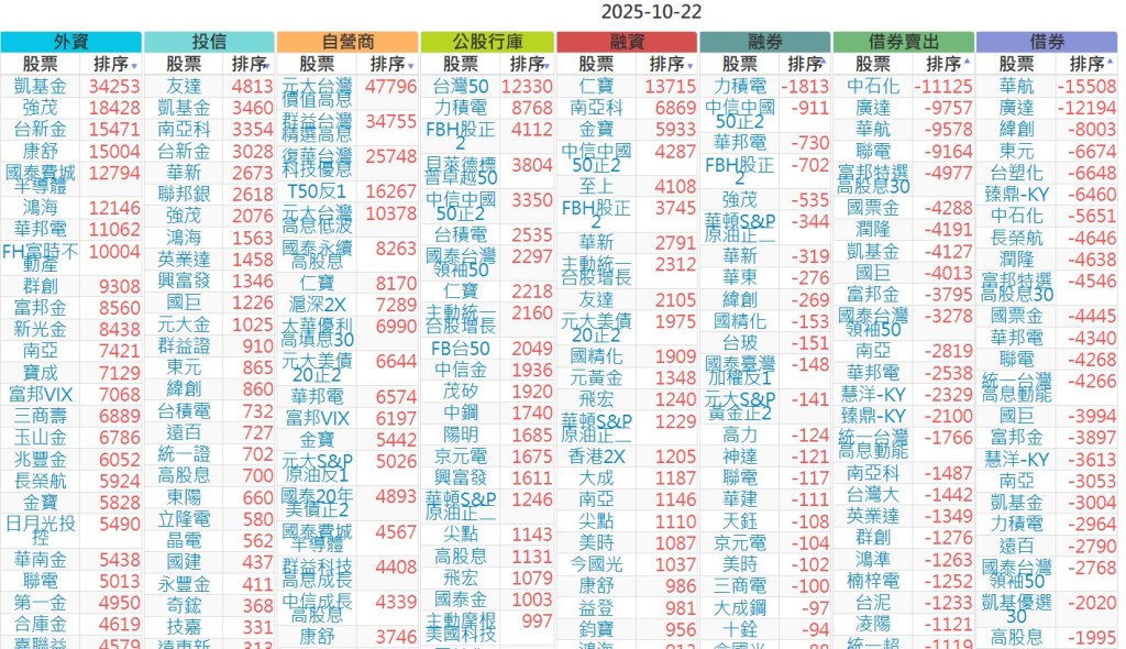 2025-1022【外資、投信】買賣超個股 2025-10-22 股狗網小編 投資誌-大盤 發表留言 上市:【外資、投信】買超(依金額) (單位:百萬) 上市:【外資、投信】賣超(依金額) (單位:百萬) 上市:【外資、投信】買超(依張數) (單位:張數) 上市:【外資、投信】賣超(依張數) (單位:張數) 免責宣言 本網站文章所提供資訊僅供參考,並無任何推介買賣之意,投資人應自行承擔交易風險。 分享此文: 按一下即可分享至 X(在新視窗中開啟) X 按一下以分享至 Facebook(在新視窗中開啟) Facebook 喜歡 正在載入...