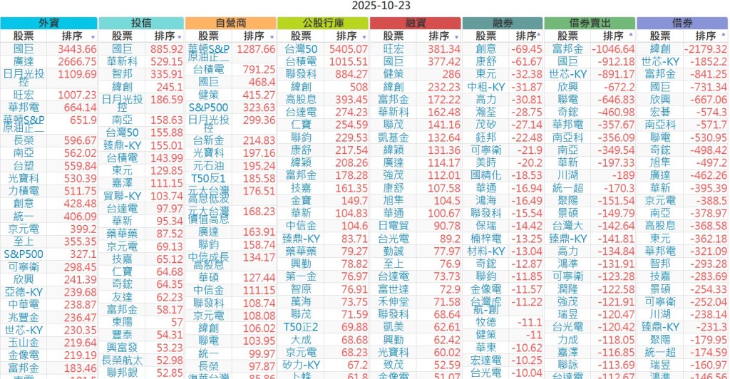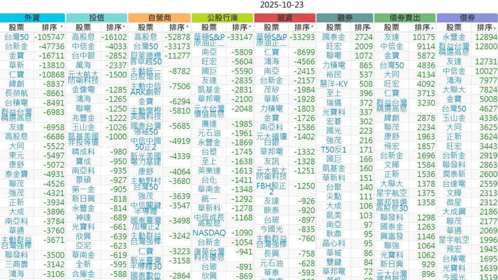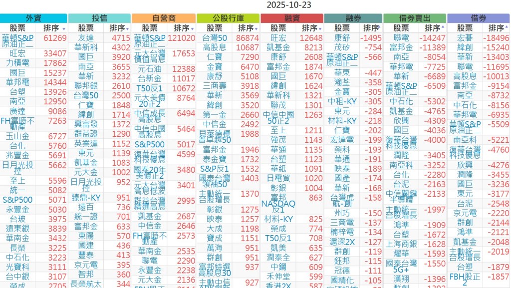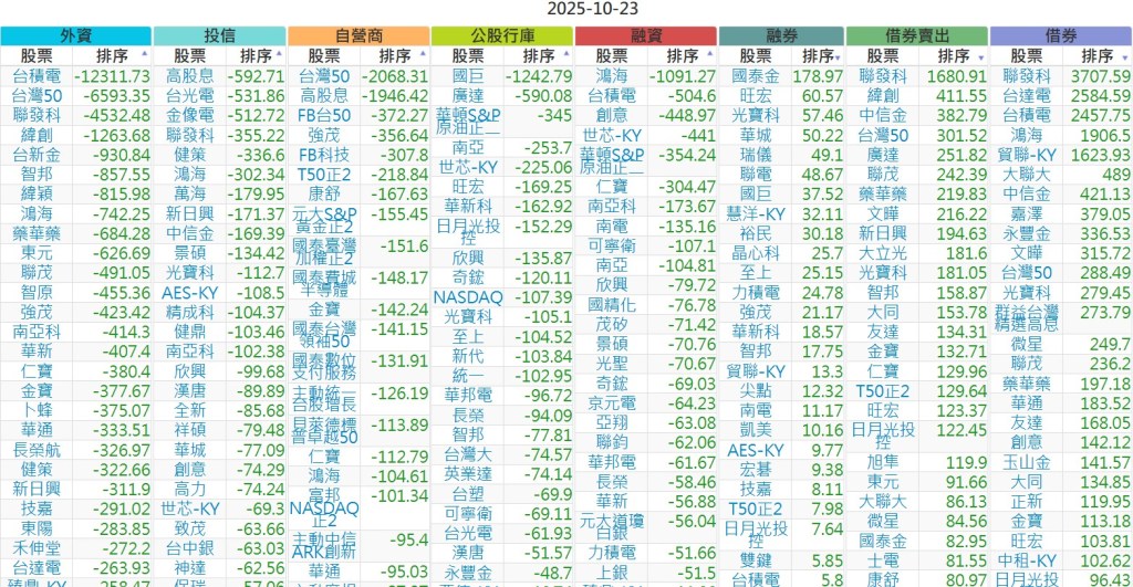 2025-1023【外資、投信】買賣超個股 2025-10-23 股狗網小編 投資誌-大盤 發表留言 上市:【外資、投信】買超(依金額) (單位:百萬) 上市:【外資、投信】賣超(依金額) (單位:百萬) 上市:【外資、投信】買超(依張數) (單位:張數) 上市:【外資、投信】賣超(依張數) (單位:張數) 免責宣言 本網站文章所提供資訊僅供參考,並無任何推介買賣之意,投資人應自行承擔交易風險。 分享此文: 按一下即可分享至 X(在新視窗中開啟) X 按一下以分享至 Facebook(在新視窗中開啟) Facebook 喜歡 正在載入...