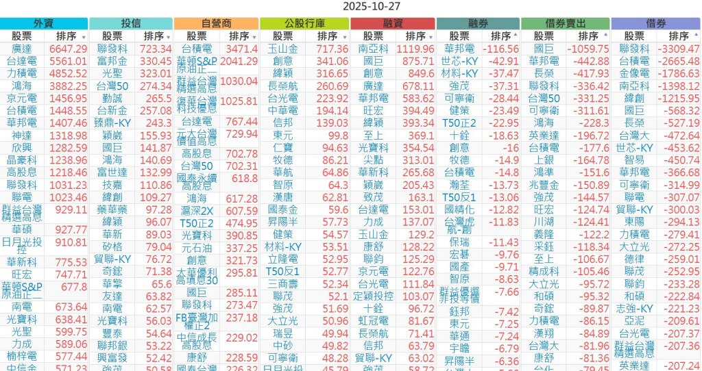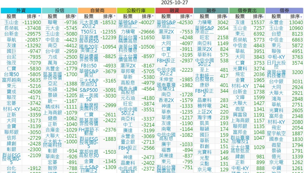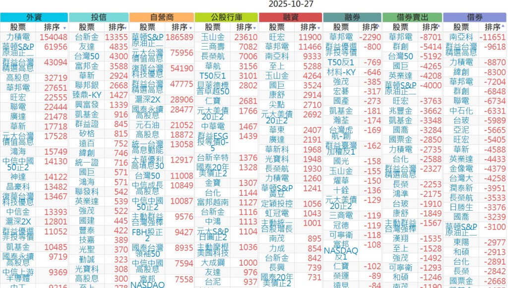 2025-1027【外資、投信】買賣超個股 2025-10-27 股狗網小編 投資誌-大盤 發表留言 上市:【外資、投信】買超(依金額) (單位:百萬) 上市:【外資、投信】賣超(依金額) (單位:百萬) 上市:【外資、投信】買超(依張數) (單位:張數) 上市:【外資、投信】賣超(依張數) (單位:張數) 免責宣言 本網站文章所提供資訊僅供參考,並無任何推介買賣之意,投資人應自行承擔交易風險。 分享此文: 按一下即可分享至 X(在新視窗中開啟) X 按一下以分享至 Facebook(在新視窗中開啟) Facebook 喜歡 正在載入...
