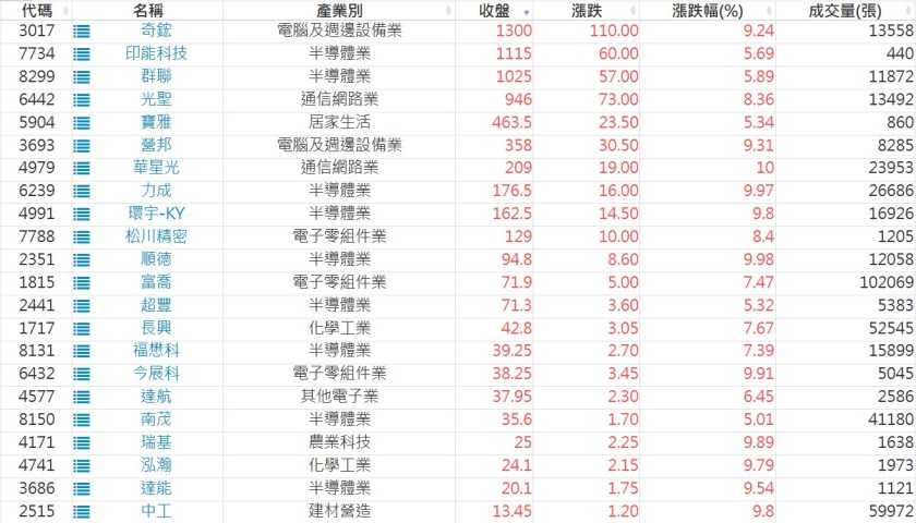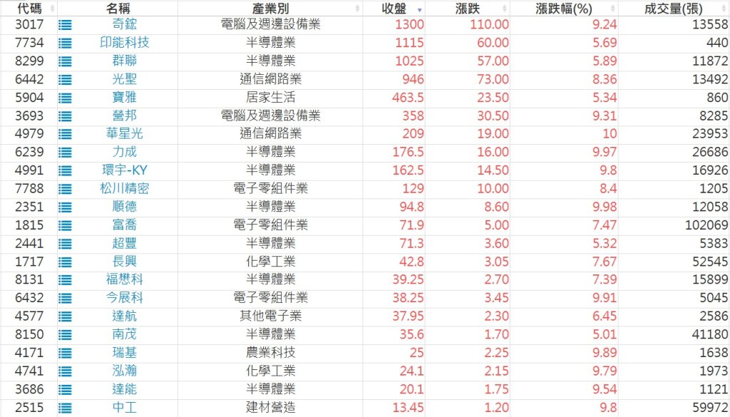 2025-1028日新高爆量上漲股 2025-10-28 股狗網小編 選股條件 發表留言 利用股狗選股的選股條件可以【挑選突破20日新高,爆量上漲起漲點股票】 1.股狗選股 https://www.stockdog.com.tw 2.選股條件: a.收盤價創20日新高 b.當日漲幅 > 2% C.成交量大於5日均量2倍 免責宣言 本網站文章所提供資訊僅供參考,並無任何推介買賣之意,投資人應自行承擔交易風險。 分享此文: 按一下即可分享至 X(在新視窗中開啟) X 按一下以分享至 Facebook(在新視窗中開啟) Facebook 喜歡 正在載入...