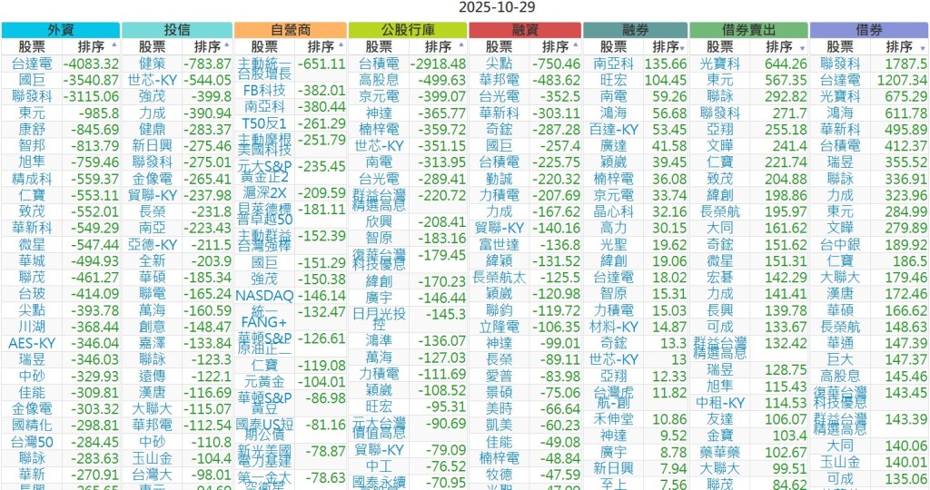 2025-1029【外資、投信】買賣超個股 2025-10-29 股狗網小編 投資誌-大盤 發表留言 上市:【外資、投信】買超(依金額) (單位:百萬) 上市:【外資、投信】賣超(依金額) (單位:百萬) 上市:【外資、投信】買超(依張數) (單位:張數) 上市:【外資、投信】賣超(依張數) (單位:張數) 免責宣言 本網站文章所提供資訊僅供參考,並無任何推介買賣之意,投資人應自行承擔交易風險。 分享此文: 按一下即可分享至 X(在新視窗中開啟) X 按一下以分享至 Facebook(在新視窗中開啟) Facebook 喜歡 正在載入...