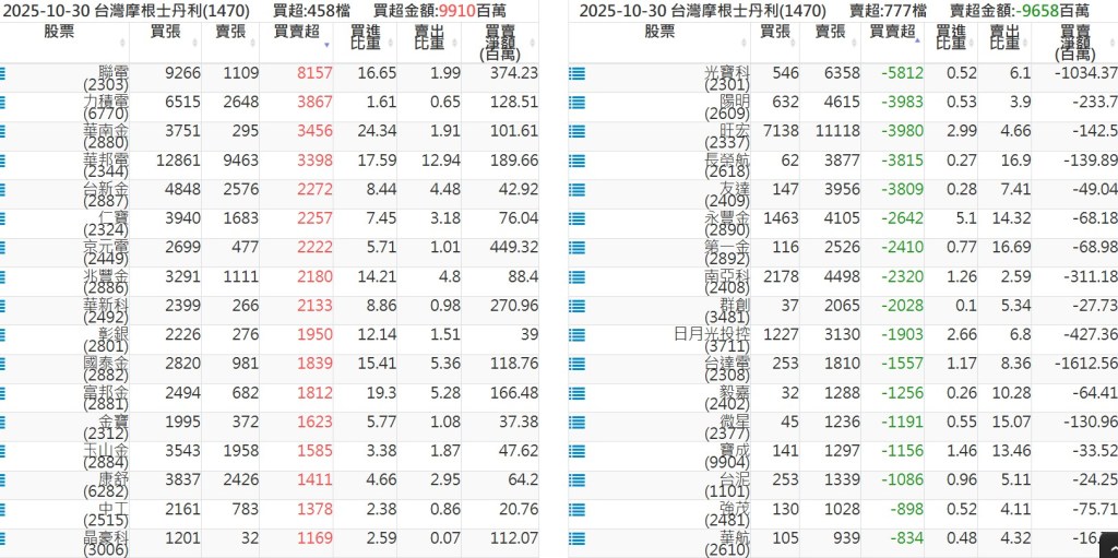 2025-1030關鍵券商買賣超 2025-10-30 股狗網小編 籌碼面每日資訊 發表留言 關鍵券商買賣超: 臺銀證券(1040): 台灣摩根士丹利(1470): 凱基台北(9268): 凱基信義(9216): 元大土城永寧(9875): 康和永和(845B) : 富邦建國(9658): 免責宣言 本網站文章所提供資訊僅供參考,並無任何推介買賣之意,投資人應自行承擔交易風險。 分享此文: 按一下即可分享至 X(在新視窗中開啟) X 按一下以分享至 Facebook(在新視窗中開啟) Facebook 喜歡 正在載入...
