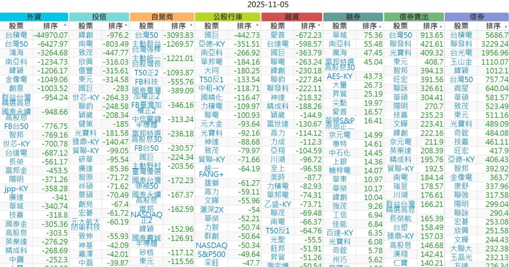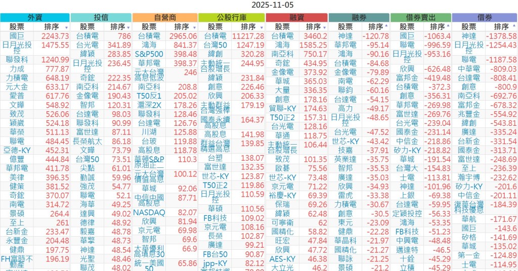 2025-1105【外資、投信】買賣超個股 2025-11-05 股狗網小編 投資誌-大盤 發表留言 上市:【外資、投信】買超(依金額) (單位:百萬) 上市:【外資、投信】賣超(依金額) (單位:百萬) 上市:【外資、投信】買超(依張數) (單位:張數) 上市:【外資、投信】賣超(依張數) (單位:張數) 免責宣言 本網站文章所提供資訊僅供參考,並無任何推介買賣之意,投資人應自行承擔交易風險。 分享此文: 按一下即可分享至 X(在新視窗中開啟) X 按一下以分享至 Facebook(在新視窗中開啟) Facebook 喜歡 正在載入...