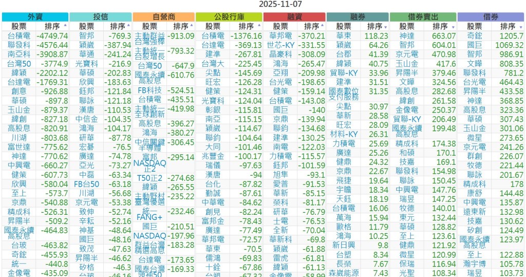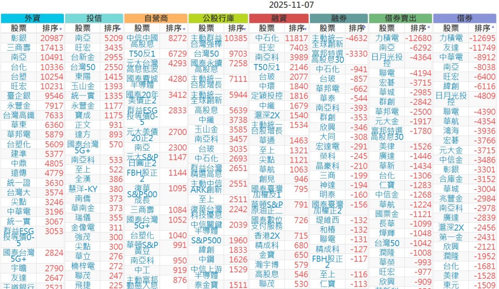 2025-1107【外資、投信】買賣超個股 2025-11-07 股狗網小編 投資誌-大盤 發表留言 上市:【外資、投信】買超(依金額) (單位:百萬) 上市:【外資、投信】賣超(依金額) (單位:百萬) 上市:【外資、投信】買超(依張數) (單位:張數) 上市:【外資、投信】賣超(依張數) (單位:張數) 免責宣言 本網站文章所提供資訊僅供參考,並無任何推介買賣之意,投資人應自行承擔交易風險。 分享此文: 按一下即可分享至 X(在新視窗中開啟) X 按一下以分享至 Facebook(在新視窗中開啟) Facebook 喜歡 正在載入...