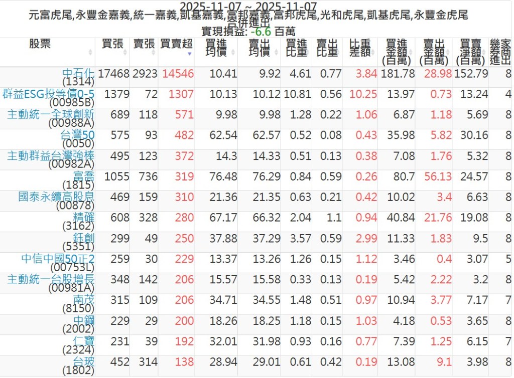 2025-1107主力買賣超個股 2025-11-07 股狗網小編 籌碼面每日資訊 發表留言 可參考下文 『如何查詢當沖、隔日沖分公司券商買賣』 主力當沖券商: 『元富虎尾』,『永豐金嘉義』,『統一嘉義』,『凱基嘉義』,『富邦嘉義』,『富邦虎尾』,『光和虎尾』,『凱基虎尾』,『永豐金虎尾』。 『當沖標的』 『買超股票』 『賣超股票』 免責宣言 本網站文章所提供資訊僅供參考,並無任何推介買賣之意,投資人應自行承擔交易風險。 分享此文: 按一下即可分享至 X(在新視窗中開啟) X 按一下以分享至 Facebook(在新視窗中開啟) Facebook 喜歡 正在載入...