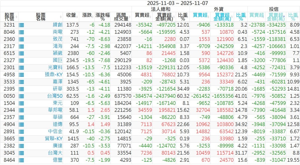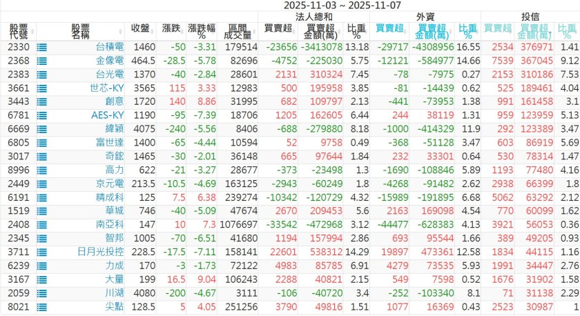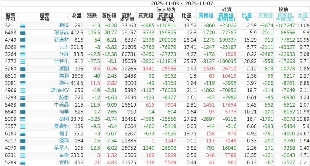 2025/11/03~2025/11/07近5日【投信】買賣超個股 2025-11-09 股狗網小編 投資誌-大盤 發表留言 【上市投信買超個股】(以金額排行,單位:萬) 【上市投信賣超個股】(以金額排行,單位:萬) 【上櫃投信買超個股】(以金額排行,單位:萬) 【上櫃投信賣超個股】(以金額排行,單位:萬) 免責宣言 本網站文章所提供資訊僅供參考,並無任何推介買賣之意,投資人應自行承擔交易風險。 分享此文: 按一下即可分享至 X(在新視窗中開啟) X 按一下以分享至 Facebook(在新視窗中開啟) Facebook 喜歡 正在載入...
