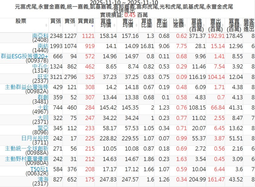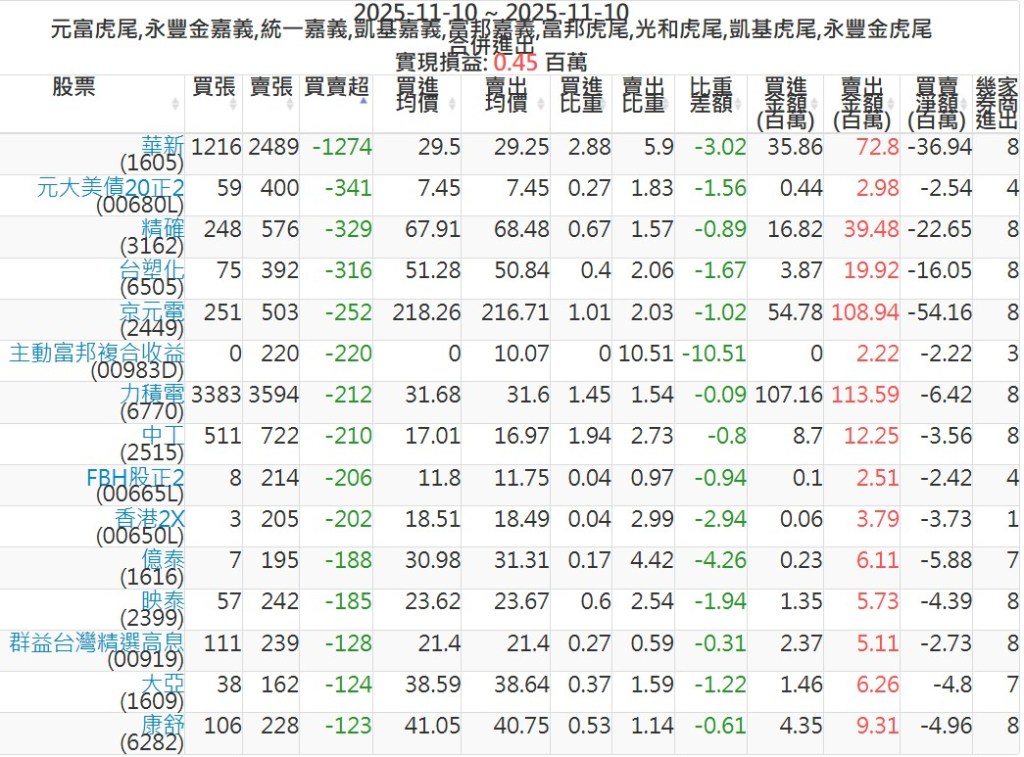 2025-1110主力買賣超個股 2025-11-10 股狗網小編 籌碼面每日資訊 發表留言 可參考下文 『如何查詢當沖、隔日沖分公司券商買賣』 主力當沖券商: 『元富虎尾』,『永豐金嘉義』,『統一嘉義』,『凱基嘉義』,『富邦嘉義』,『富邦虎尾』,『光和虎尾』,『凱基虎尾』,『永豐金虎尾』。 『當沖標的』 『買超股票』 『賣超股票』 免責宣言 本網站文章所提供資訊僅供參考,並無任何推介買賣之意,投資人應自行承擔交易風險。 分享此文: 按一下即可分享至 X(在新視窗中開啟) X 按一下以分享至 Facebook(在新視窗中開啟) Facebook 喜歡 正在載入...