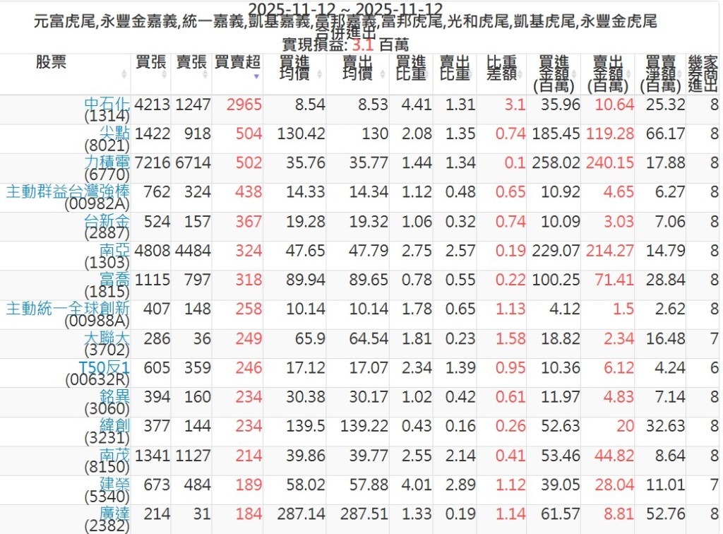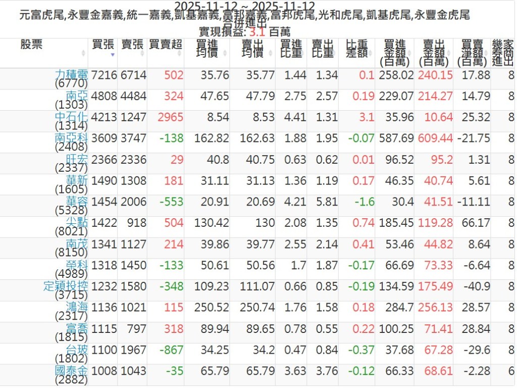 2025-1112主力買賣超個股 2025-11-12 股狗網小編 籌碼面每日資訊 發表留言 可參考下文 『如何查詢當沖、隔日沖分公司券商買賣』 主力當沖券商: 『元富虎尾』,『永豐金嘉義』,『統一嘉義』,『凱基嘉義』,『富邦嘉義』,『富邦虎尾』,『光和虎尾』,『凱基虎尾』,『永豐金虎尾』。 『當沖標的』 『買超股票』 『賣超股票』 免責宣言 本網站文章所提供資訊僅供參考,並無任何推介買賣之意,投資人應自行承擔交易風險。 分享此文: 按一下即可分享至 X(在新視窗中開啟) X 按一下以分享至 Facebook(在新視窗中開啟) Facebook 喜歡 正在載入...