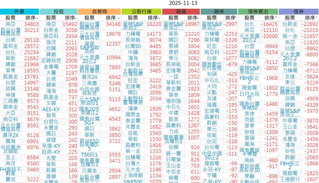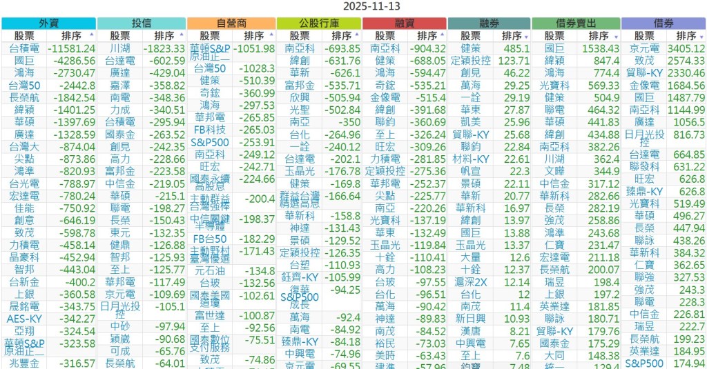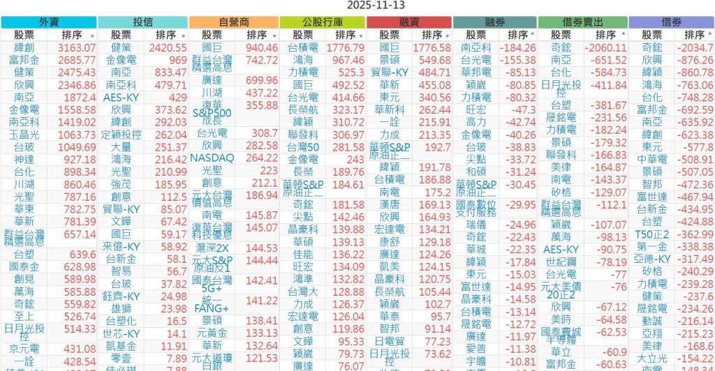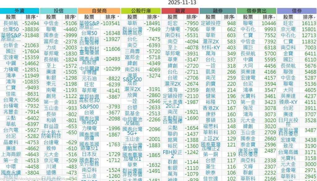 2025-1113【外資、投信】買賣超個股 2025-11-13 股狗網小編 投資誌-大盤 發表留言 上市:【外資、投信】買超(依金額) (單位:百萬) 上市:【外資、投信】賣超(依金額) (單位:百萬) 上市:【外資、投信】買超(依張數) (單位:張數) 上市:【外資、投信】賣超(依張數) (單位:張數) 免責宣言 本網站文章所提供資訊僅供參考,並無任何推介買賣之意,投資人應自行承擔交易風險。 分享此文: 按一下即可分享至 X(在新視窗中開啟) X 按一下以分享至 Facebook(在新視窗中開啟) Facebook 喜歡 正在載入...
