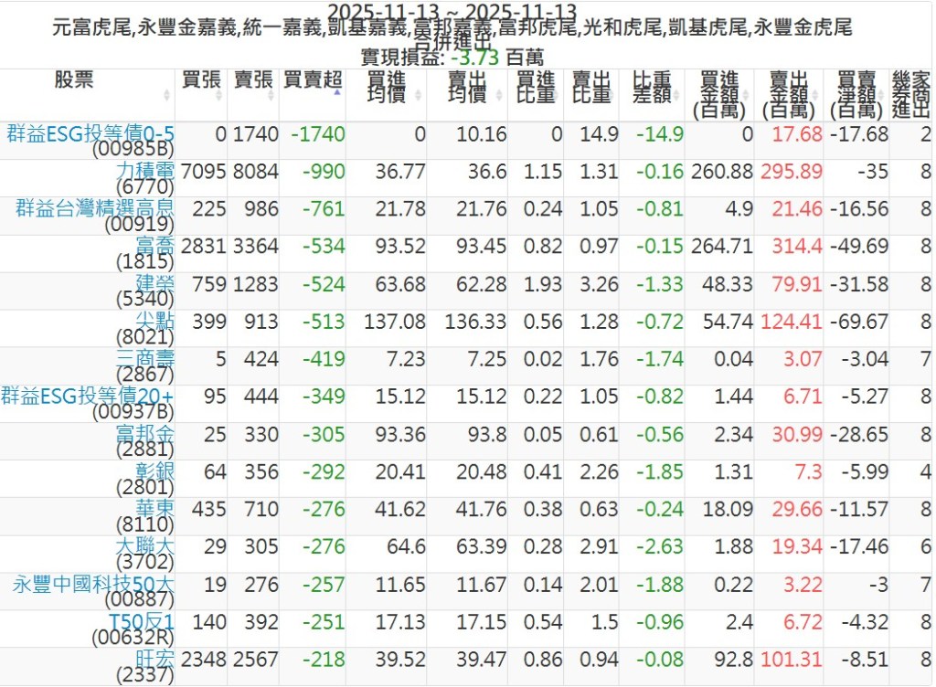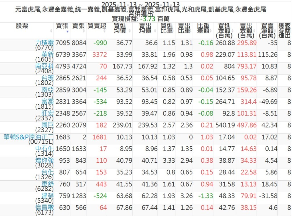 2025-1113主力買賣超個股 2025-11-13 股狗網小編 籌碼面每日資訊 發表留言 可參考下文 『如何查詢當沖、隔日沖分公司券商買賣』 主力當沖券商: 『元富虎尾』,『永豐金嘉義』,『統一嘉義』,『凱基嘉義』,『富邦嘉義』,『富邦虎尾』,『光和虎尾』,『凱基虎尾』,『永豐金虎尾』。 『當沖標的』 『買超股票』 『賣超股票』 免責宣言 本網站文章所提供資訊僅供參考,並無任何推介買賣之意,投資人應自行承擔交易風險。 分享此文: 按一下即可分享至 X(在新視窗中開啟) X 按一下以分享至 Facebook(在新視窗中開啟) Facebook 喜歡 正在載入...