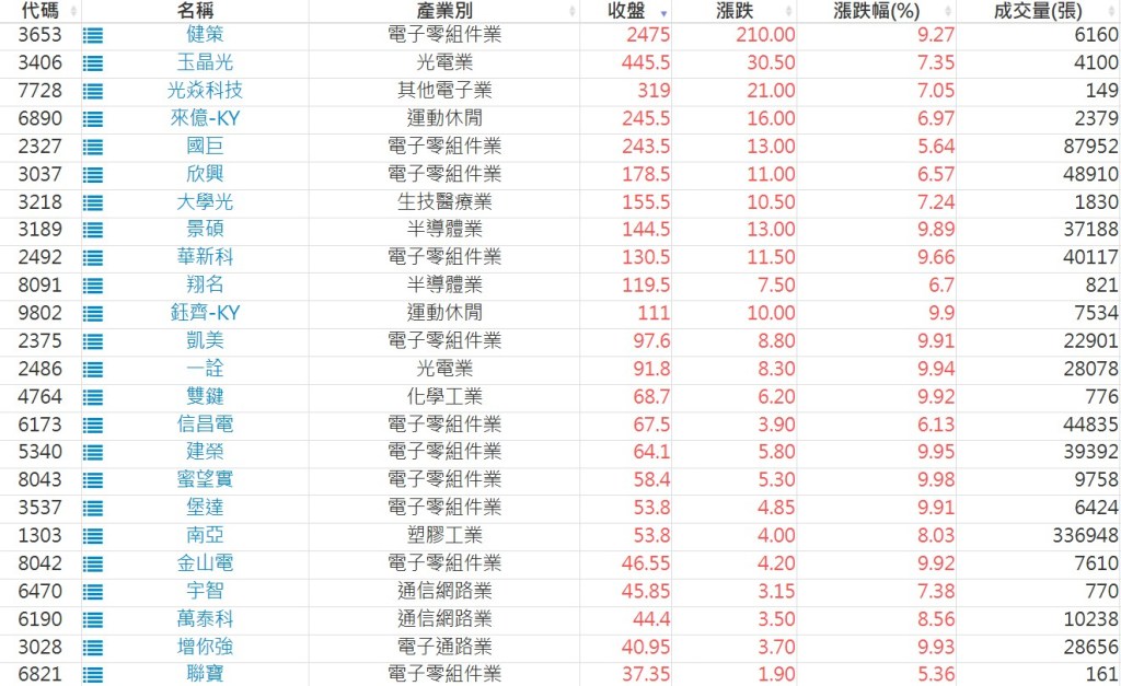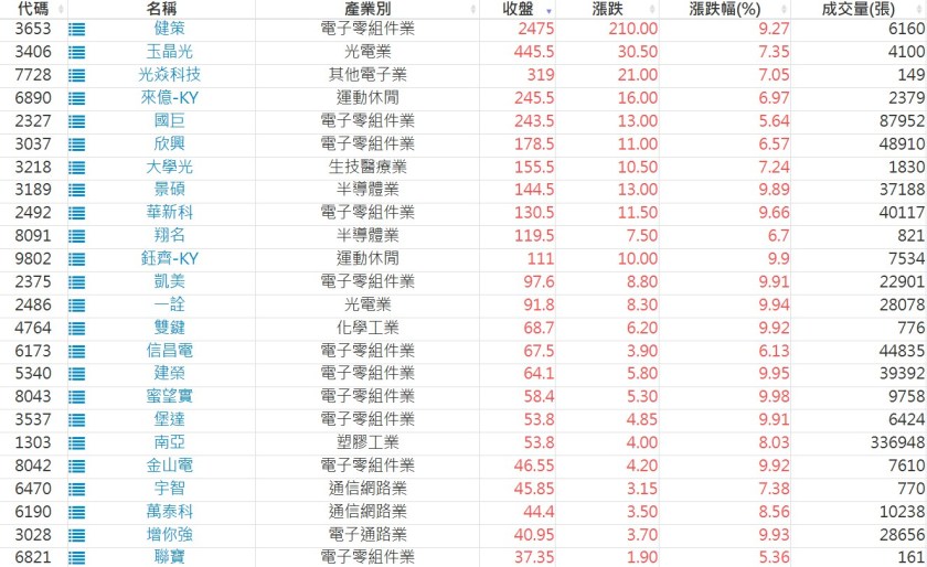2025-1113日新高爆量上漲股 2025-11-13 股狗網小編 選股條件 發表留言 利用股狗選股的選股條件可以【挑選突破20日新高,爆量上漲起漲點股票】 1.股狗選股 https://www.stockdog.com.tw 2.選股條件: a.收盤價創20日新高 b.當日漲幅 > 2% C.成交量大於5日均量2倍 免責宣言 本網站文章所提供資訊僅供參考,並無任何推介買賣之意,投資人應自行承擔交易風險。 分享此文: 按一下即可分享至 X(在新視窗中開啟) X 按一下以分享至 Facebook(在新視窗中開啟) Facebook 喜歡 正在載入...