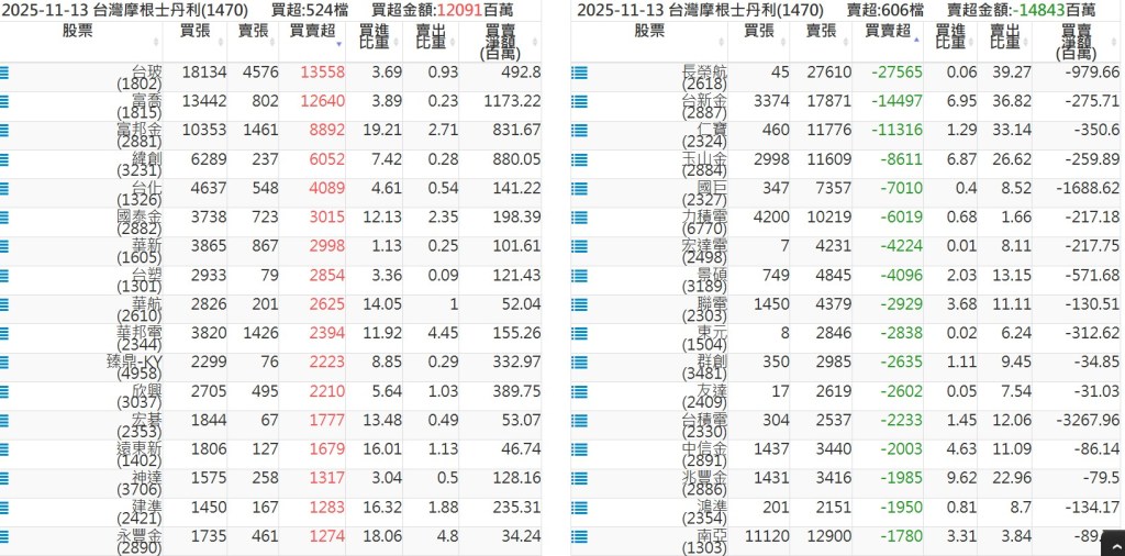 2025-1113關鍵券商買賣超 2025-11-13 股狗網小編 籌碼面每日資訊 發表留言 關鍵券商買賣超: 臺銀證券(1040): 台灣摩根士丹利(1470): 凱基台北(9268): 凱基信義(9216): 元大土城永寧(9875): 康和永和(845B) : 富邦建國(9658): 免責宣言 本網站文章所提供資訊僅供參考,並無任何推介買賣之意,投資人應自行承擔交易風險。 分享此文: 按一下即可分享至 X(在新視窗中開啟) X 按一下以分享至 Facebook(在新視窗中開啟) Facebook 喜歡 正在載入...
