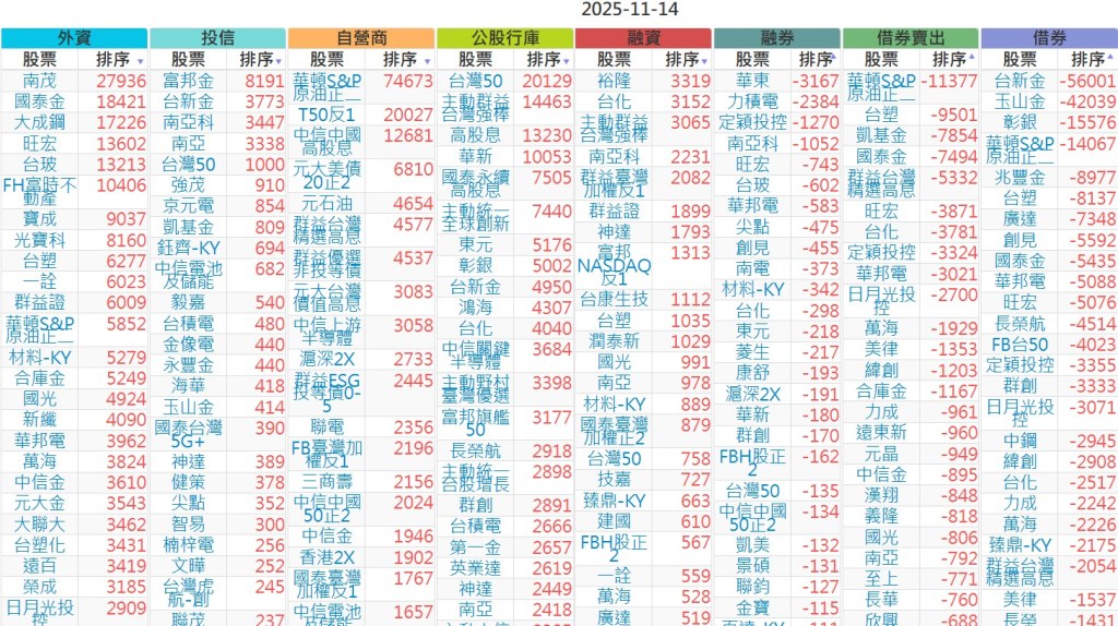 2025-1114【外資、投信】買賣超個股 2025-11-14 股狗網小編 投資誌-大盤 發表留言 上市:【外資、投信】買超(依金額) (單位:百萬) 上市:【外資、投信】賣超(依金額) (單位:百萬) 上市:【外資、投信】買超(依張數) (單位:張數) 上市:【外資、投信】賣超(依張數) (單位:張數) 免責宣言 本網站文章所提供資訊僅供參考,並無任何推介買賣之意,投資人應自行承擔交易風險。 分享此文: 按一下即可分享至 X(在新視窗中開啟) X 按一下以分享至 Facebook(在新視窗中開啟) Facebook 喜歡 正在載入...