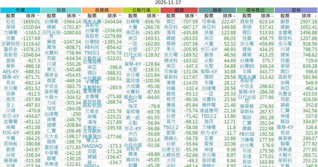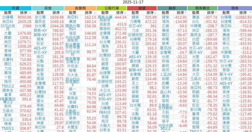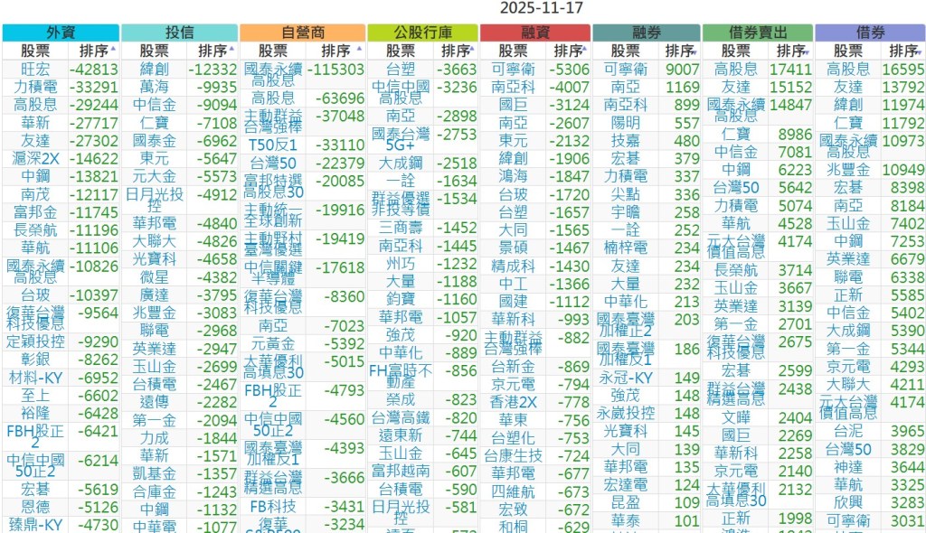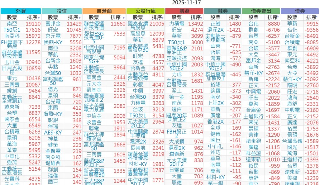 2025-1117【外資、投信】買賣超個股 2025-11-17 股狗網小編 投資誌-大盤 發表留言 上市:【外資、投信】買超(依金額) (單位:百萬) 上市:【外資、投信】賣超(依金額) (單位:百萬) 上市:【外資、投信】買超(依張數) (單位:張數) 上市:【外資、投信】賣超(依張數) (單位:張數) 免責宣言 本網站文章所提供資訊僅供參考,並無任何推介買賣之意,投資人應自行承擔交易風險。 分享此文: 按一下即可分享至 X(在新視窗中開啟) X 按一下以分享至 Facebook(在新視窗中開啟) Facebook 喜歡 正在載入...
