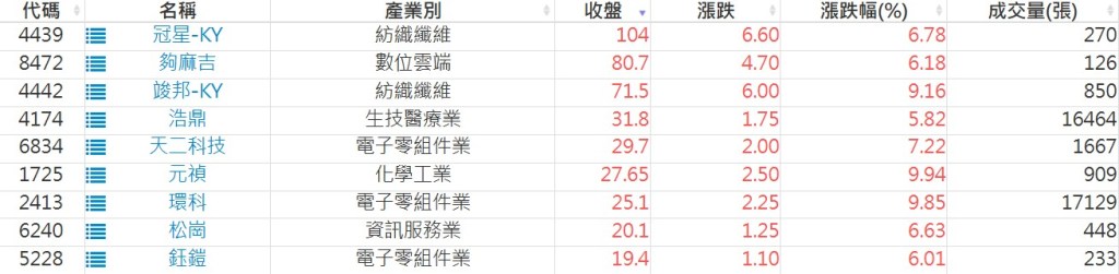 2025-1119日新高爆量上漲股 2025-11-19 股狗網小編 選股條件 發表留言 利用股狗選股的選股條件可以【挑選突破20日新高,爆量上漲起漲點股票】 1.股狗選股 https://www.stockdog.com.tw 2.選股條件: a.收盤價創20日新高 b.當日漲幅 > 2% C.成交量大於5日均量2倍 免責宣言 本網站文章所提供資訊僅供參考,並無任何推介買賣之意,投資人應自行承擔交易風險。 分享此文: 按一下即可分享至 X(在新視窗中開啟) X 按一下以分享至 Facebook(在新視窗中開啟) Facebook 喜歡 正在載入...