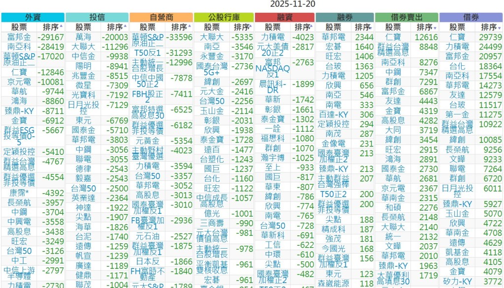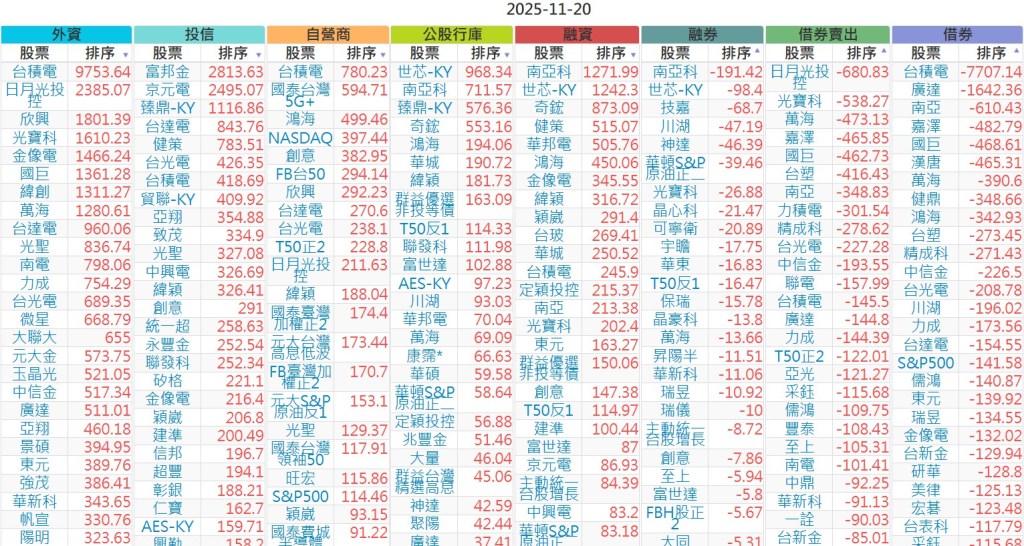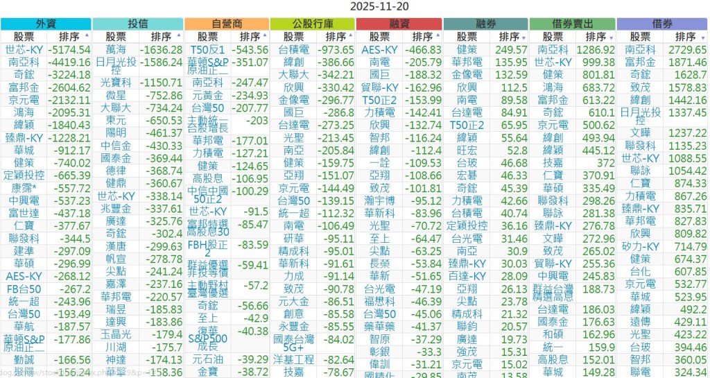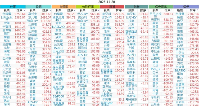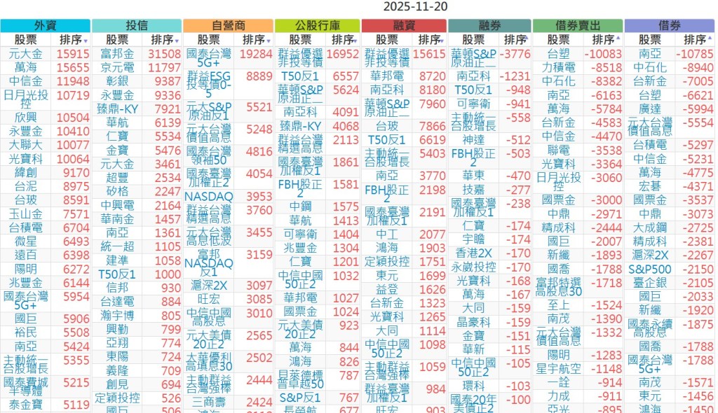 2025-1120【外資、投信】買賣超個股 2025-11-20 股狗網小編 投資誌-大盤 發表留言 上市:【外資、投信】買超(依金額) (單位:百萬) 上市:【外資、投信】賣超(依金額) (單位:百萬) 上市:【外資、投信】買超(依張數) (單位:張數) 上市:【外資、投信】賣超(依張數) (單位:張數) 免責宣言 本網站文章所提供資訊僅供參考,並無任何推介買賣之意,投資人應自行承擔交易風險。 分享此文: 按一下即可分享至 X(在新視窗中開啟) X 按一下以分享至 Facebook(在新視窗中開啟) Facebook 喜歡 正在載入...
