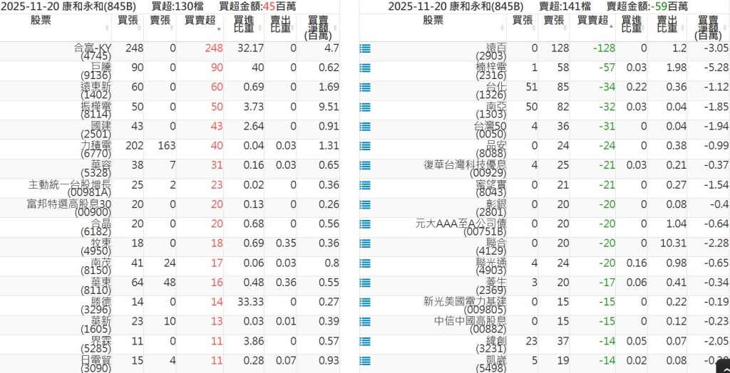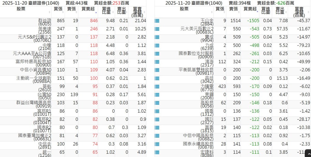 2025-1120關鍵券商買賣超 2025-11-20 股狗網小編 籌碼面每日資訊 發表留言 關鍵券商買賣超: 臺銀證券(1040): 台灣摩根士丹利(1470): 凱基台北(9268): 凱基信義(9216): 元大土城永寧(9875): 康和永和(845B) : 富邦建國(9658): 免責宣言 本網站文章所提供資訊僅供參考,並無任何推介買賣之意,投資人應自行承擔交易風險。 分享此文: 按一下即可分享至 X(在新視窗中開啟) X 按一下以分享至 Facebook(在新視窗中開啟) Facebook 喜歡 正在載入...