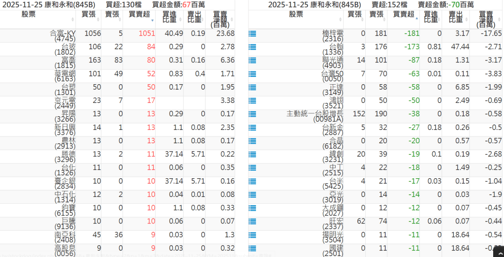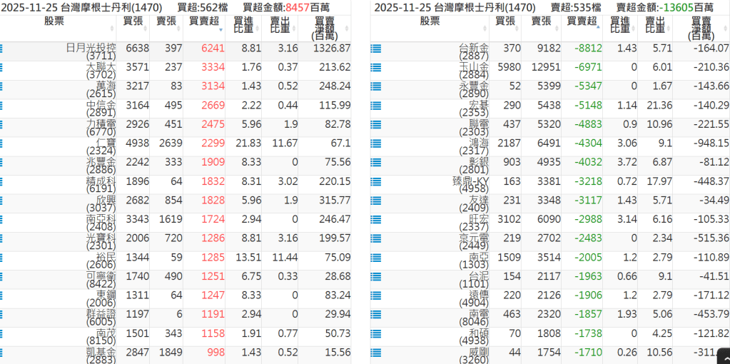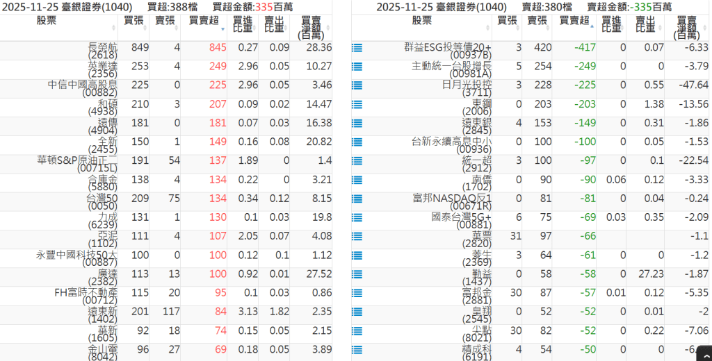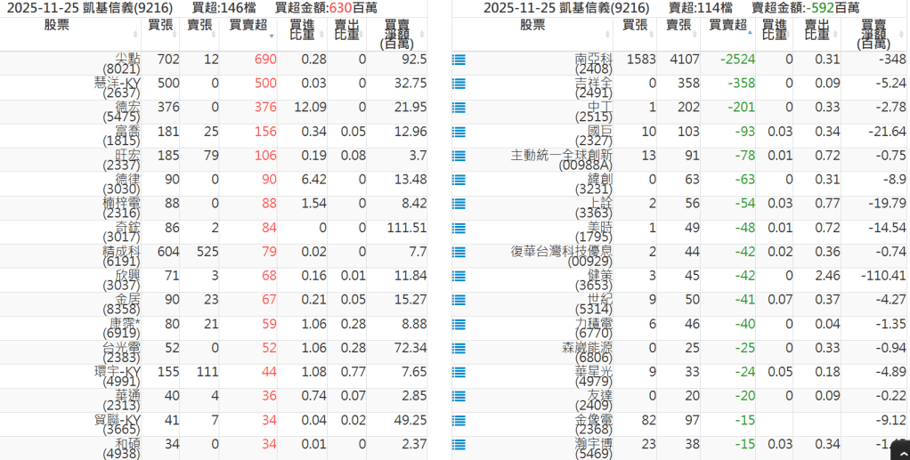 2025-1125關鍵券商買賣超 2025-11-25 股狗網小編 籌碼面每日資訊 發表留言 關鍵券商買賣超: 臺銀證券(1040): 台灣摩根士丹利(1470): 凱基台北(9268): 凱基信義(9216): 元大土城永寧(9875): 康和永和(845B) : 富邦建國(9658): 免責宣言 本網站文章所提供資訊僅供參考,並無任何推介買賣之意,投資人應自行承擔交易風險。 分享此文: 按一下即可分享至 X(在新視窗中開啟) X 按一下以分享至 Facebook(在新視窗中開啟) Facebook 喜歡 正在載入...