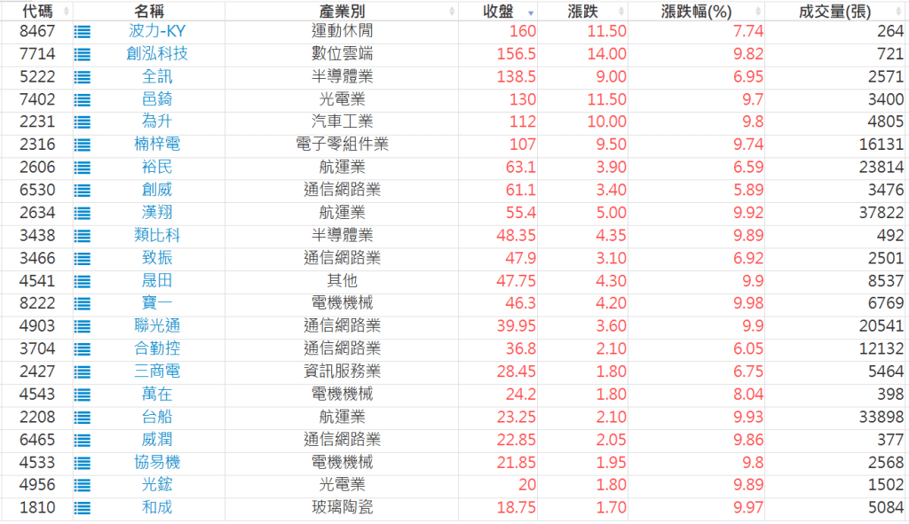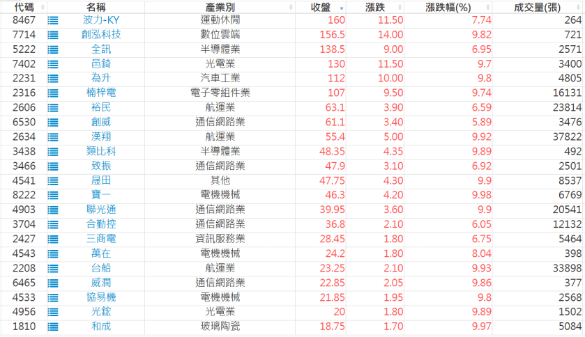 2025-1126日新高爆量上漲股 2025-11-26 股狗網小編 選股條件 發表留言 利用股狗選股的選股條件可以【挑選突破20日新高,爆量上漲起漲點股票】 1.股狗選股 https://www.stockdog.com.tw 2.選股條件: a.收盤價創20日新高 b.當日漲幅 > 2% C.成交量大於5日均量2倍 免責宣言 本網站文章所提供資訊僅供參考,並無任何推介買賣之意,投資人應自行承擔交易風險。 分享此文: 按一下即可分享至 X(在新視窗中開啟) X 按一下以分享至 Facebook(在新視窗中開啟) Facebook 喜歡 正在載入...