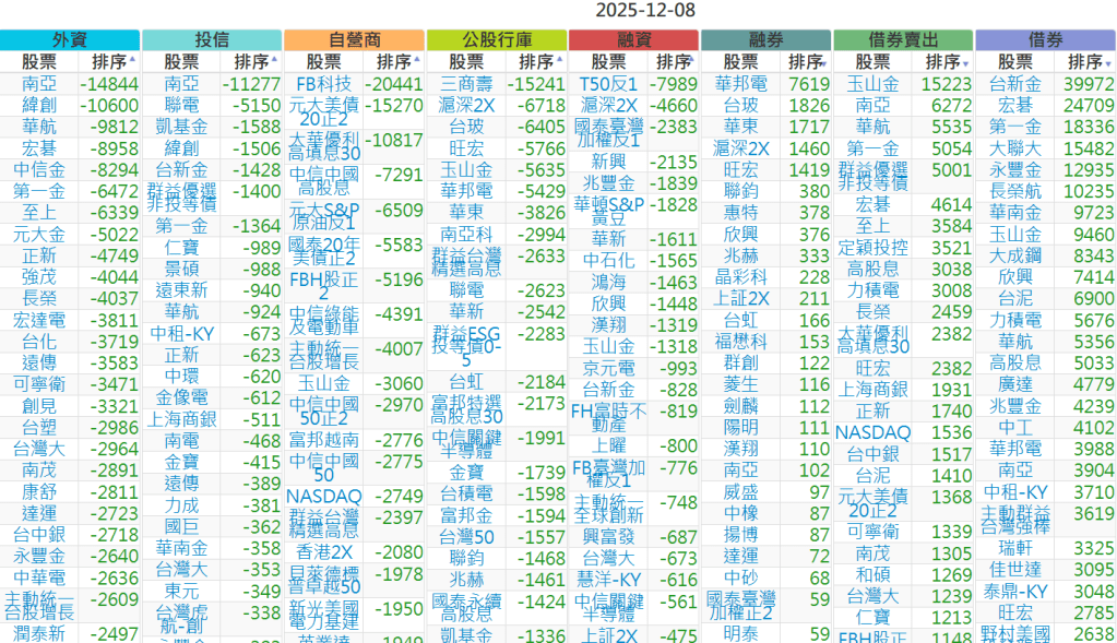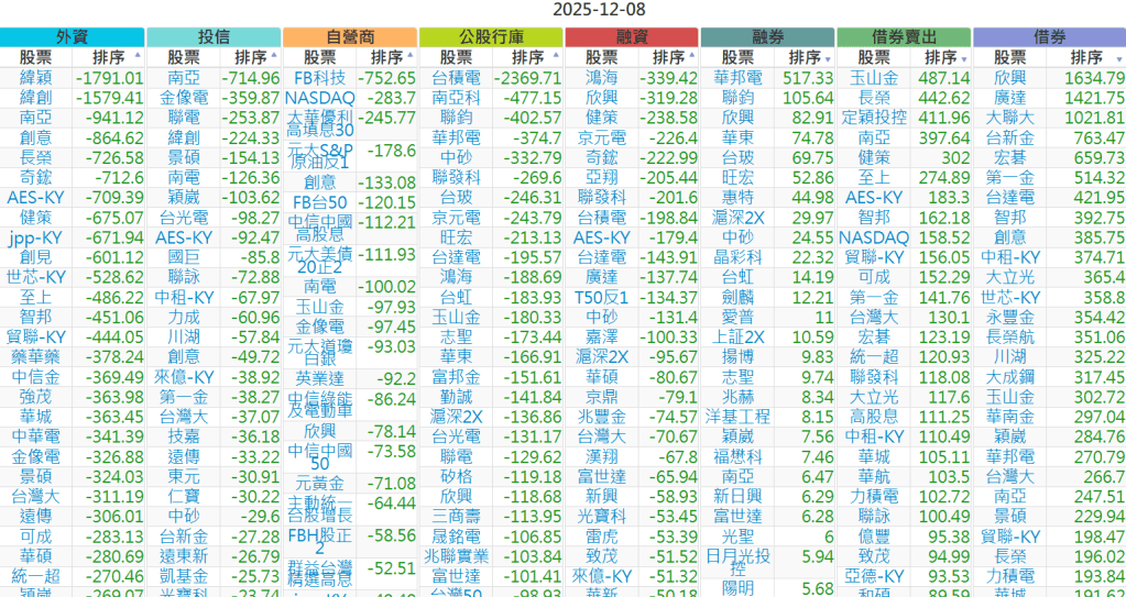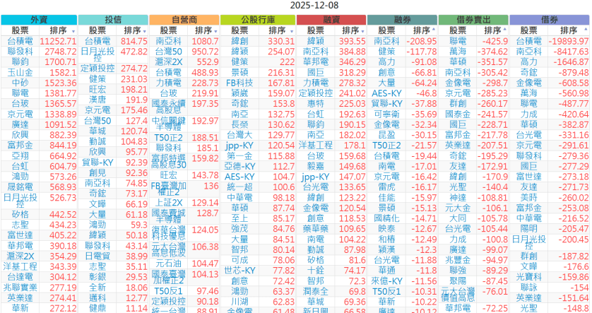 2025-1208【外資、投信】買賣超個股 2025-12-08 股狗網小編 投資誌-大盤 發表留言 上市:【外資、投信】買超(依金額) (單位:百萬) 上市:【外資、投信】賣超(依金額) (單位:百萬) 上市:【外資、投信】買超(依張數) (單位:張數) 上市:【外資、投信】賣超(依張數) (單位:張數) 免責宣言 本網站文章所提供資訊僅供參考,並無任何推介買賣之意,投資人應自行承擔交易風險。 分享此文: 按一下即可分享至 X(在新視窗中開啟) X 按一下以分享至 Facebook(在新視窗中開啟) Facebook 喜歡 正在載入...