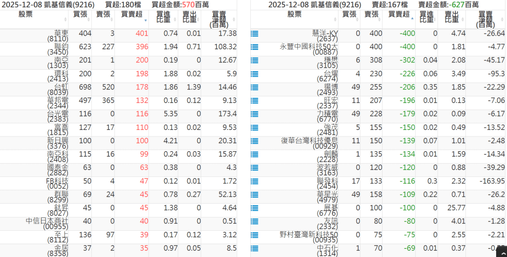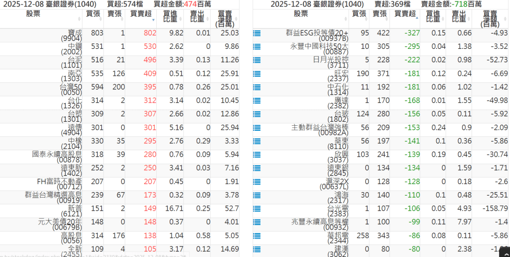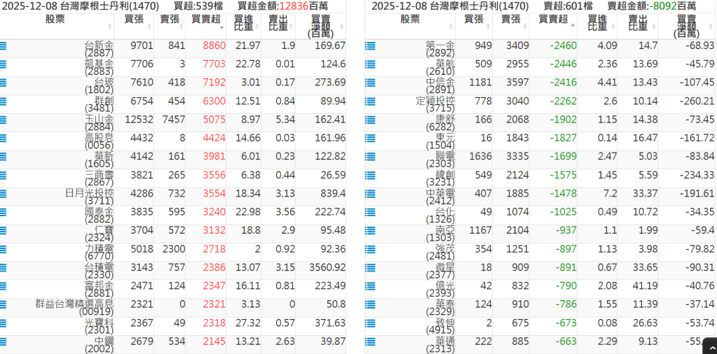 2025-1208關鍵券商買賣超 2025-12-08 股狗網小編 籌碼面每日資訊 發表留言 關鍵券商買賣超: 臺銀證券(1040): 台灣摩根士丹利(1470): 凱基台北(9268): 凱基信義(9216): 元大土城永寧(9875): 康和永和(845B) : 富邦建國(9658): 免責宣言 本網站文章所提供資訊僅供參考,並無任何推介買賣之意,投資人應自行承擔交易風險。 分享此文: 按一下即可分享至 X(在新視窗中開啟) X 按一下以分享至 Facebook(在新視窗中開啟) Facebook 喜歡 正在載入...