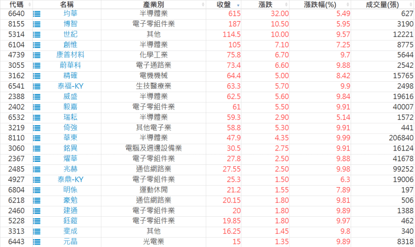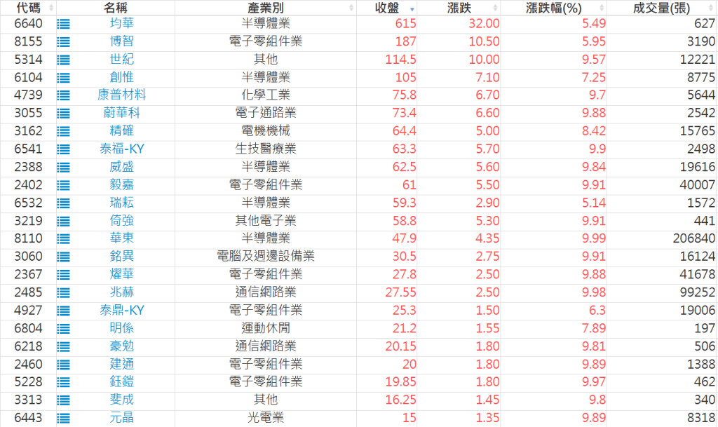 2025-1209日新高爆量上漲股 2025-12-09 股狗網小編 選股條件 發表留言 利用股狗選股的選股條件可以【挑選突破20日新高,爆量上漲起漲點股票】 1.股狗選股 https://www.stockdog.com.tw 2.選股條件: a.收盤價創20日新高 b.當日漲幅 > 2% C.成交量大於5日均量2倍 免責宣言 本網站文章所提供資訊僅供參考,並無任何推介買賣之意,投資人應自行承擔交易風險。 分享此文: 按一下即可分享至 X(在新視窗中開啟) X 按一下以分享至 Facebook(在新視窗中開啟) Facebook 喜歡 正在載入...