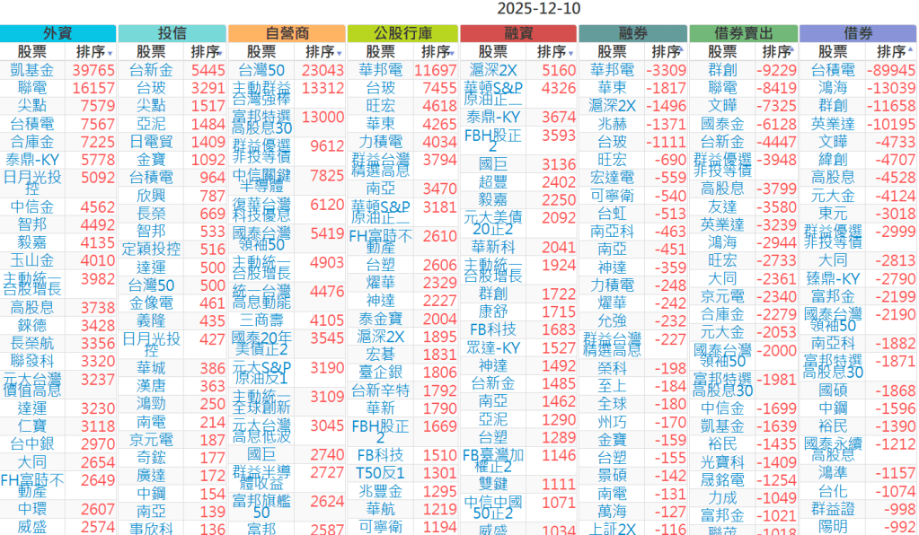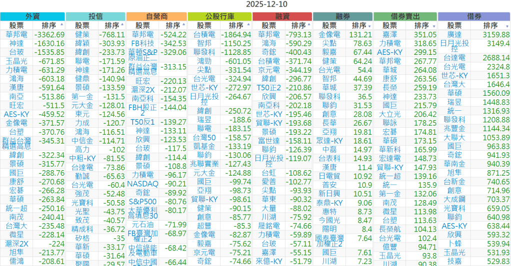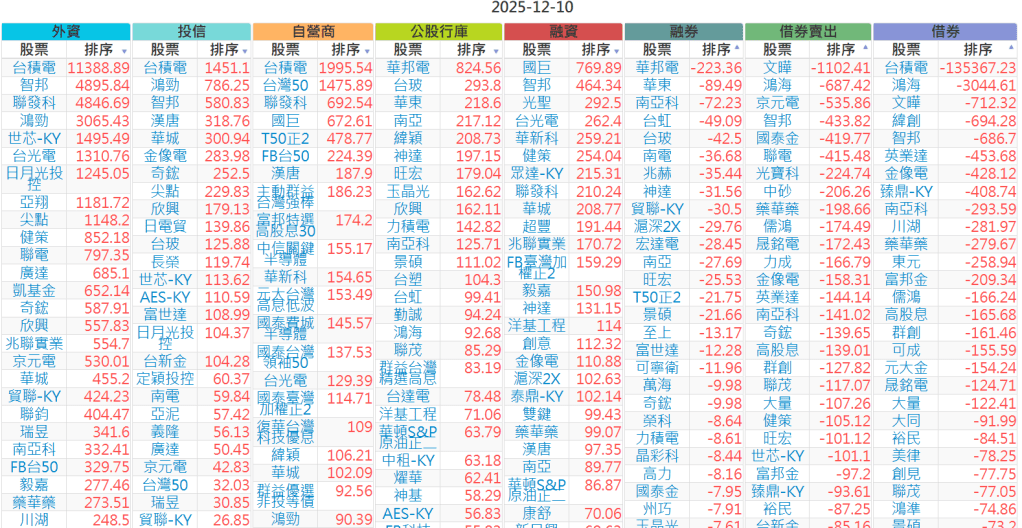 2025-1210【外資、投信】買賣超個股 2025-12-10 股狗網小編 投資誌-大盤 發表留言 上市:【外資、投信】買超(依金額) (單位:百萬) 上市:【外資、投信】賣超(依金額) (單位:百萬) 上市:【外資、投信】買超(依張數) (單位:張數) 上市:【外資、投信】賣超(依張數) (單位:張數) 免責宣言 本網站文章所提供資訊僅供參考,並無任何推介買賣之意,投資人應自行承擔交易風險。 分享此文: 按一下即可分享至 X(在新視窗中開啟) X 按一下以分享至 Facebook(在新視窗中開啟) Facebook 喜歡 正在載入...