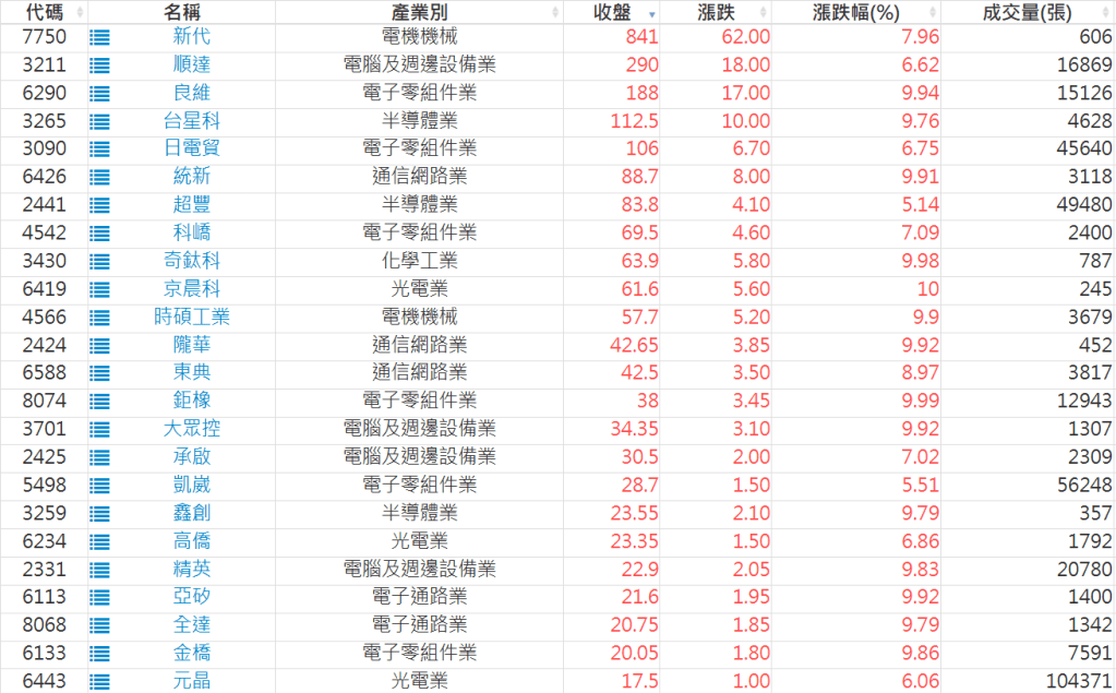 2025-1211日新高爆量上漲股 2025-12-11 股狗網小編 選股條件 發表留言 利用股狗選股的選股條件可以【挑選突破20日新高,爆量上漲起漲點股票】 1.股狗選股 https://www.stockdog.com.tw 2.選股條件: a.收盤價創20日新高 b.當日漲幅 > 2% C.成交量大於5日均量2倍 免責宣言 本網站文章所提供資訊僅供參考,並無任何推介買賣之意,投資人應自行承擔交易風險。 分享此文: 按一下即可分享至 X(在新視窗中開啟) X 按一下以分享至 Facebook(在新視窗中開啟) Facebook 喜歡 正在載入...