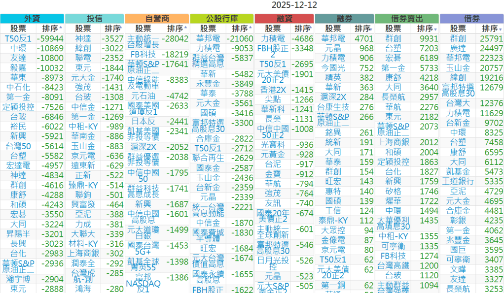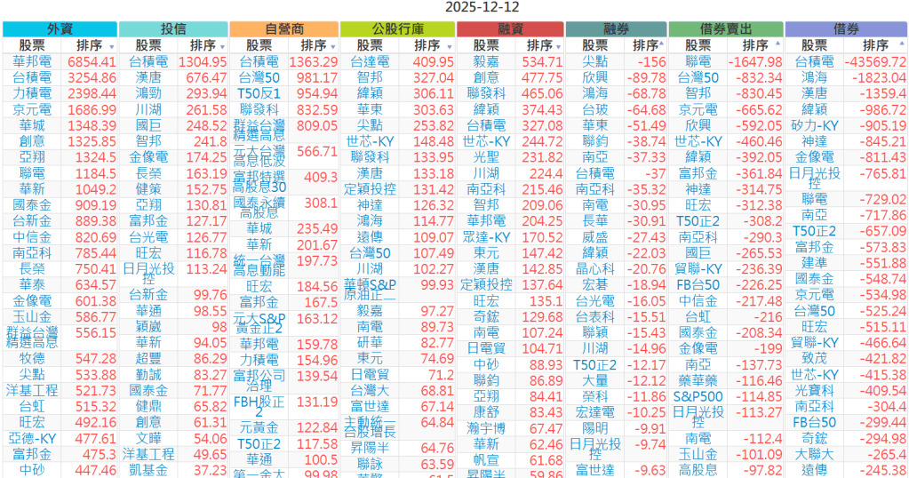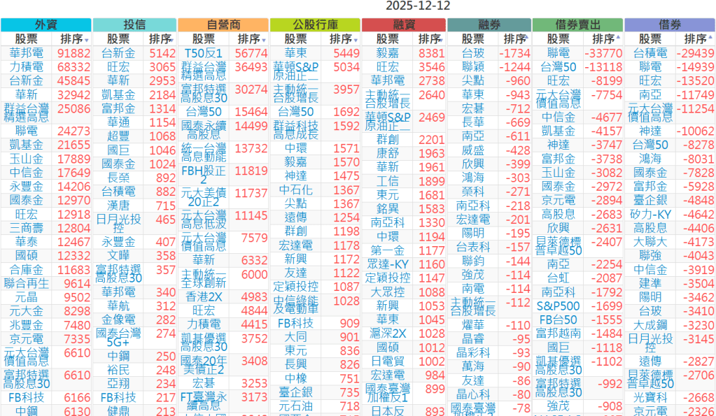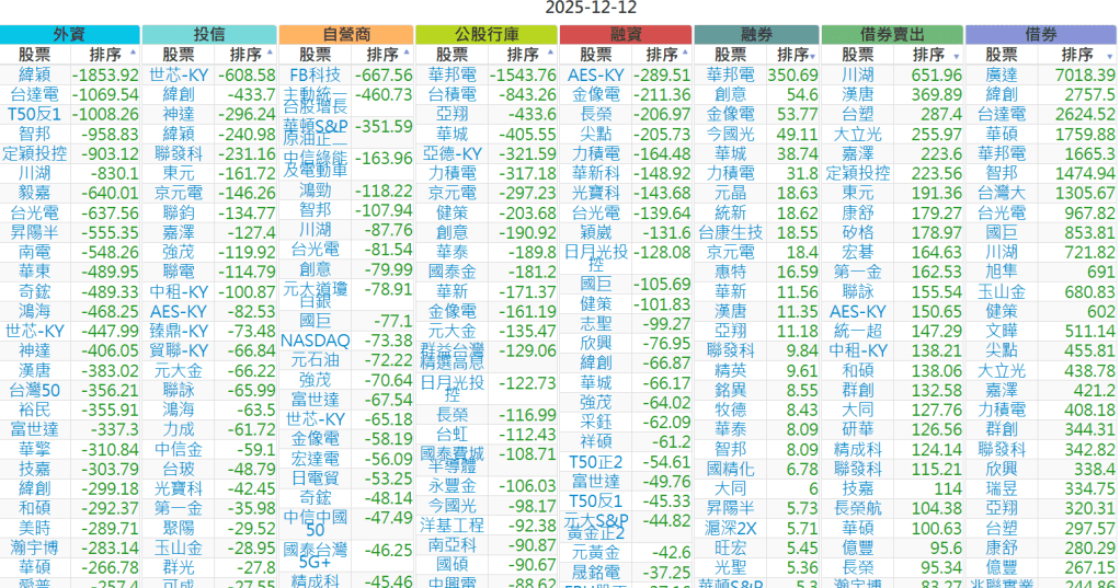 2025-1212【外資、投信】買賣超個股 2025-12-12 股狗網小編 投資誌-大盤 發表留言 上市:【外資、投信】買超(依金額) (單位:百萬) 上市:【外資、投信】賣超(依金額) (單位:百萬) 上市:【外資、投信】買超(依張數) (單位:張數) 上市:【外資、投信】賣超(依張數) (單位:張數) 免責宣言 本網站文章所提供資訊僅供參考,並無任何推介買賣之意,投資人應自行承擔交易風險。 分享此文: 按一下即可分享至 X(在新視窗中開啟) X 按一下以分享至 Facebook(在新視窗中開啟) Facebook 喜歡 正在載入...