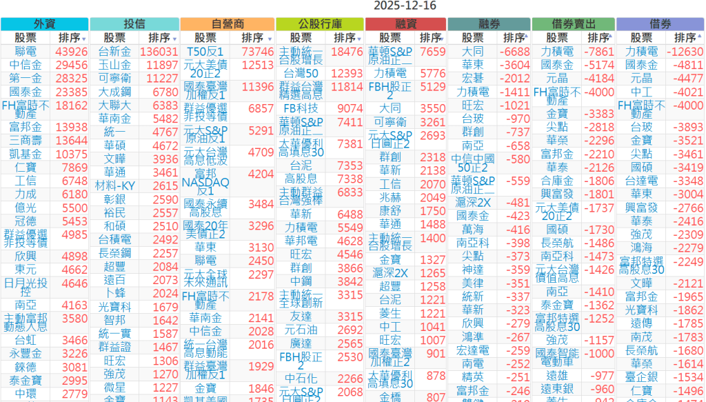 2025-1216【外資、投信】買賣超個股 2025-12-16 股狗網小編 投資誌-大盤 發表留言 上市:【外資、投信】買超(依金額) (單位:百萬) 上市:【外資、投信】賣超(依金額) (單位:百萬) 上市:【外資、投信】買超(依張數) (單位:張數) 上市:【外資、投信】賣超(依張數) (單位:張數) 免責宣言 本網站文章所提供資訊僅供參考,並無任何推介買賣之意,投資人應自行承擔交易風險。 分享此文: 按一下即可分享至 X(在新視窗中開啟) X 按一下以分享至 Facebook(在新視窗中開啟) Facebook 喜歡 正在載入...