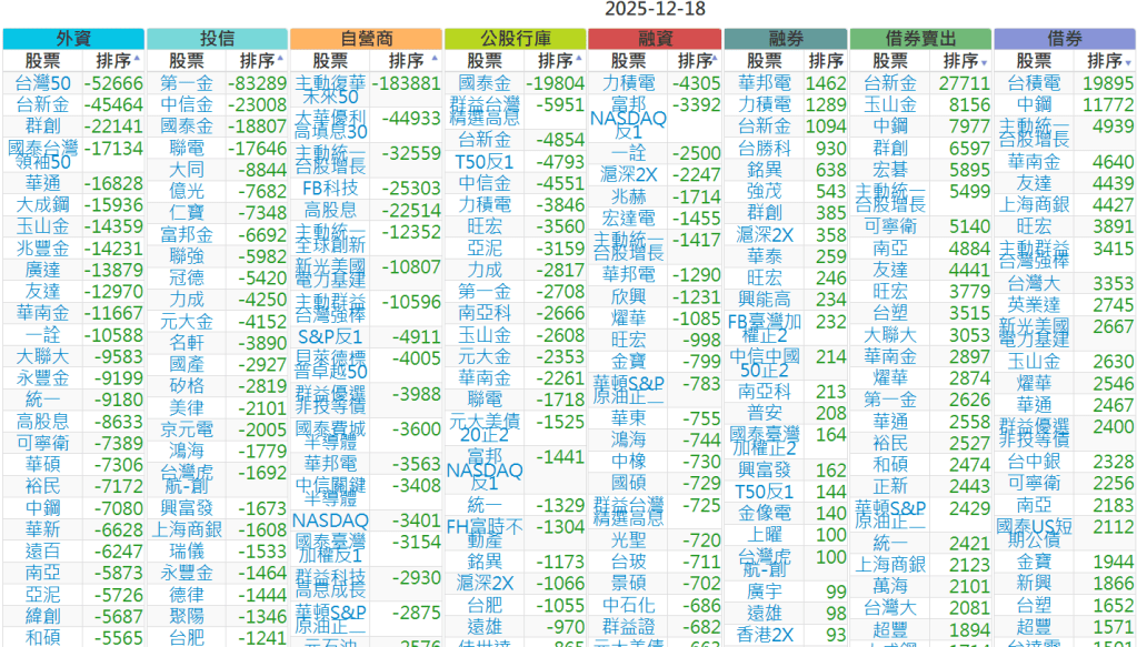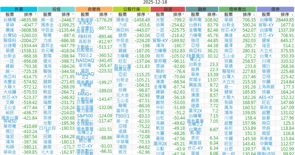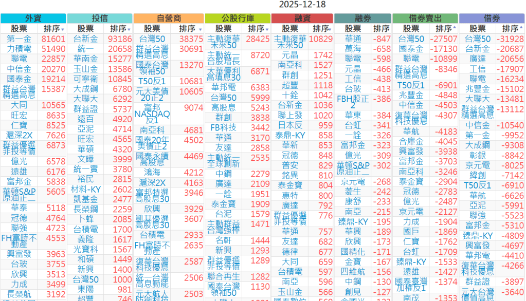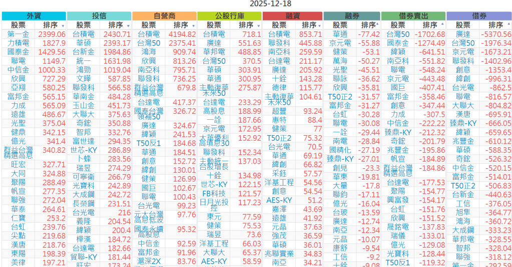 2025-1218【外資、投信】買賣超個股 2025-12-18 股狗網小編 投資誌-大盤 發表留言 上市:【外資、投信】買超(依金額) (單位:百萬) 上市:【外資、投信】賣超(依金額) (單位:百萬) 上市:【外資、投信】買超(依張數) (單位:張數) 上市:【外資、投信】賣超(依張數) (單位:張數) 免責宣言 本網站文章所提供資訊僅供參考,並無任何推介買賣之意,投資人應自行承擔交易風險。 分享此文: 按一下即可分享至 X(在新視窗中開啟) X 按一下以分享至 Facebook(在新視窗中開啟) Facebook 喜歡 正在載入...