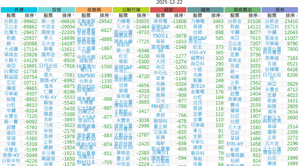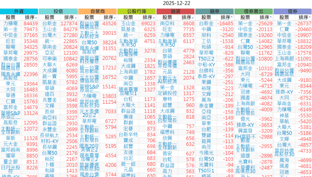 2025-1222【外資、投信】買賣超個股 2025-12-22 股狗網小編 投資誌-大盤 發表留言 上市:【外資、投信】買超(依金額) (單位:百萬) 上市:【外資、投信】賣超(依金額) (單位:百萬) 上市:【外資、投信】買超(依張數) (單位:張數) 上市:【外資、投信】賣超(依張數) (單位:張數) 免責宣言 本網站文章所提供資訊僅供參考,並無任何推介買賣之意,投資人應自行承擔交易風險。 分享此文: 按一下即可分享至 X(在新視窗中開啟) X 按一下以分享至 Facebook(在新視窗中開啟) Facebook 喜歡 正在載入...