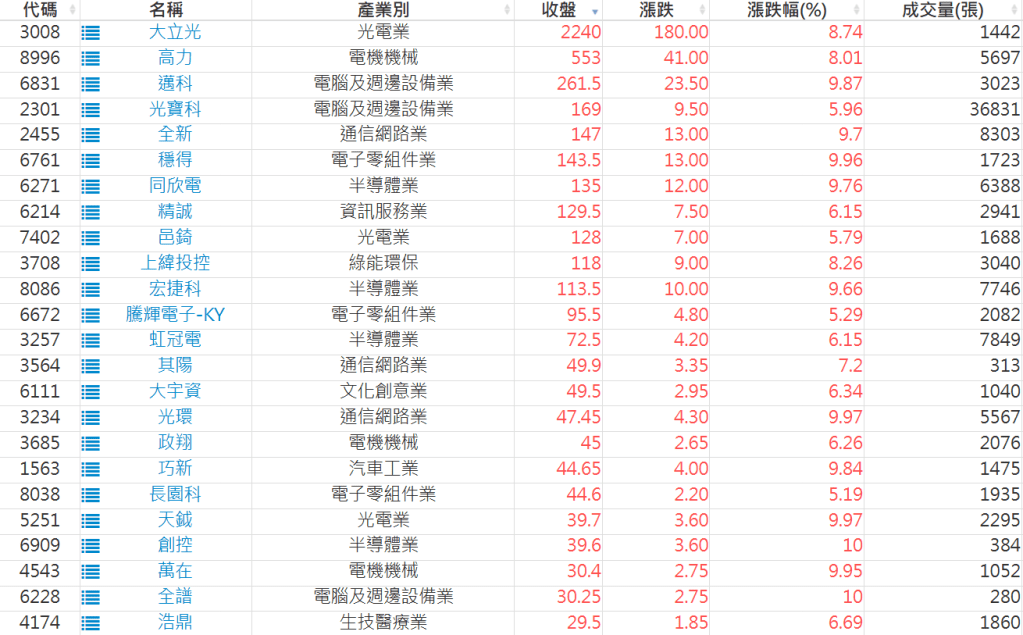 2025-1222日新高爆量上漲股 2025-12-22 股狗網小編 選股條件 發表留言 利用股狗選股的選股條件可以【挑選突破20日新高,爆量上漲起漲點股票】 1.股狗選股 https://www.stockdog.com.tw 2.選股條件: a.收盤價創20日新高 b.當日漲幅 > 2% C.成交量大於5日均量2倍 免責宣言 本網站文章所提供資訊僅供參考,並無任何推介買賣之意,投資人應自行承擔交易風險。 分享此文: 按一下即可分享至 X(在新視窗中開啟) X 按一下以分享至 Facebook(在新視窗中開啟) Facebook 喜歡 正在載入...