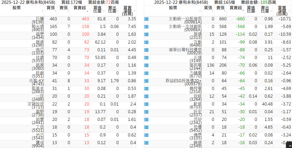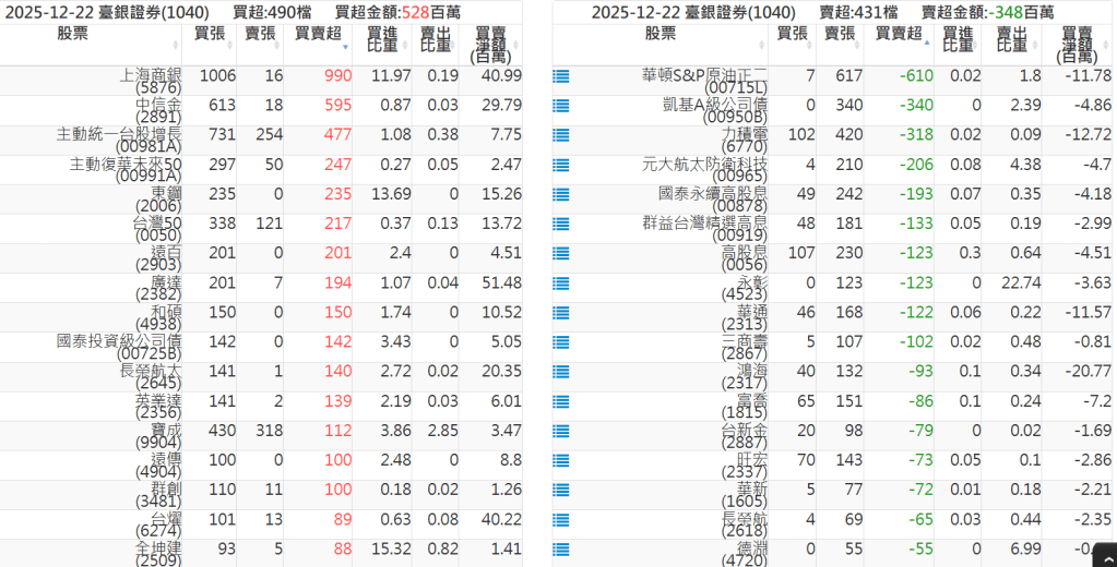 2025-1222關鍵券商買賣超 2025-12-22 股狗網小編 籌碼面每日資訊 發表留言 關鍵券商買賣超: 臺銀證券(1040): 台灣摩根士丹利(1470): 凱基台北(9268): 凱基信義(9216): 元大土城永寧(9875): 康和永和(845B) : 富邦建國(9658): 免責宣言 本網站文章所提供資訊僅供參考,並無任何推介買賣之意,投資人應自行承擔交易風險。 分享此文: 按一下即可分享至 X(在新視窗中開啟) X 按一下以分享至 Facebook(在新視窗中開啟) Facebook 喜歡 正在載入...