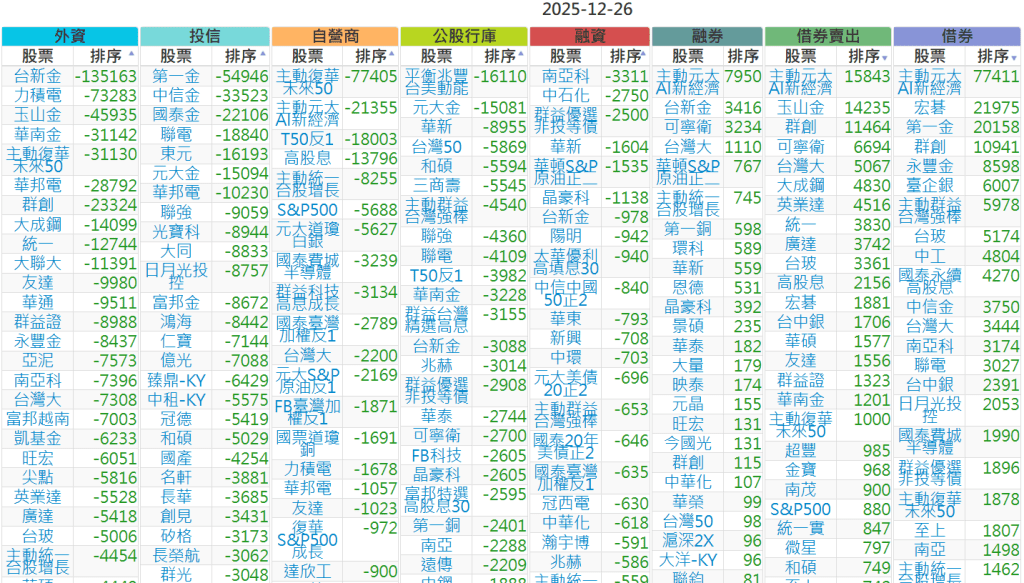 2025-1226【外資、投信】買賣超個股 2025-12-27 股狗網小編 投資誌-大盤 發表留言 上市:【外資、投信】買超(依金額) (單位:百萬) 上市:【外資、投信】賣超(依金額) (單位:百萬) 上市:【外資、投信】買超(依張數) (單位:張數) 上市:【外資、投信】賣超(依張數) (單位:張數) 免責宣言 本網站文章所提供資訊僅供參考,並無任何推介買賣之意,投資人應自行承擔交易風險。 分享此文: 按一下即可分享至 X(在新視窗中開啟) X 按一下以分享至 Facebook(在新視窗中開啟) Facebook 喜歡 正在載入...