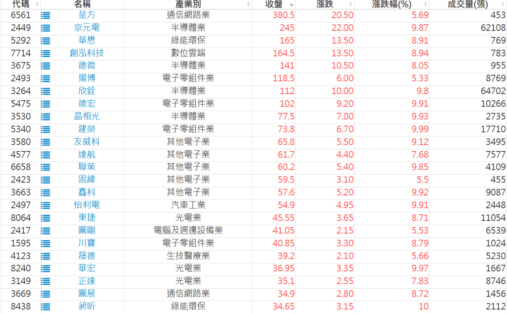 2025-1229日新高爆量上漲股 2025-12-29 股狗網小編 選股條件 發表留言 利用股狗選股的選股條件可以【挑選突破20日新高,爆量上漲起漲點股票】 1.股狗選股 https://www.stockdog.com.tw 2.選股條件: a.收盤價創20日新高 b.當日漲幅 > 2% C.成交量大於5日均量2倍 免責宣言 本網站文章所提供資訊僅供參考,並無任何推介買賣之意,投資人應自行承擔交易風險。 分享此文: 分享到 X(在新視窗中開啟) X 分享到 Facebook(在新視窗中開啟) Facebook 喜歡 正在載入...