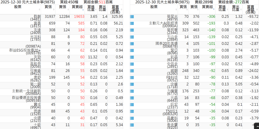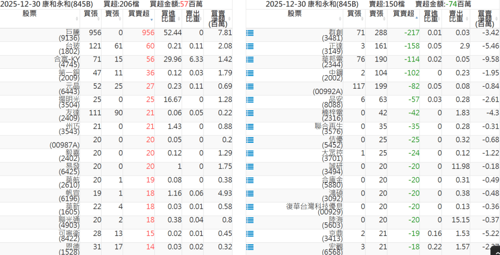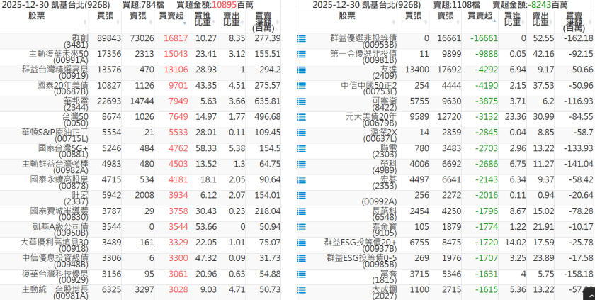 2025-1230關鍵券商買賣超 2025-12-30 股狗網小編 籌碼面每日資訊 發表留言 關鍵券商買賣超: 臺銀證券(1040): 台灣摩根士丹利(1470): 凱基台北(9268): 凱基信義(9216): 元大土城永寧(9875): 康和永和(845B) : 富邦建國(9658): 免責宣言 本網站文章所提供資訊僅供參考,並無任何推介買賣之意,投資人應自行承擔交易風險。 分享此文: 按一下即可分享至 X(在新視窗中開啟) X 按一下以分享至 Facebook(在新視窗中開啟) Facebook 喜歡 正在載入...