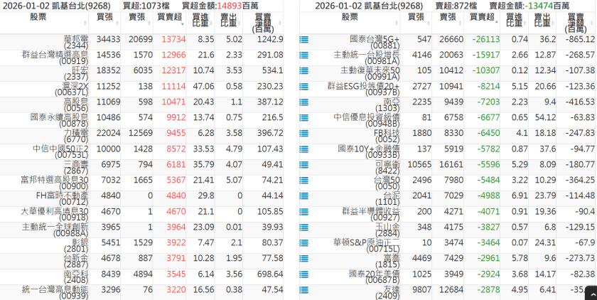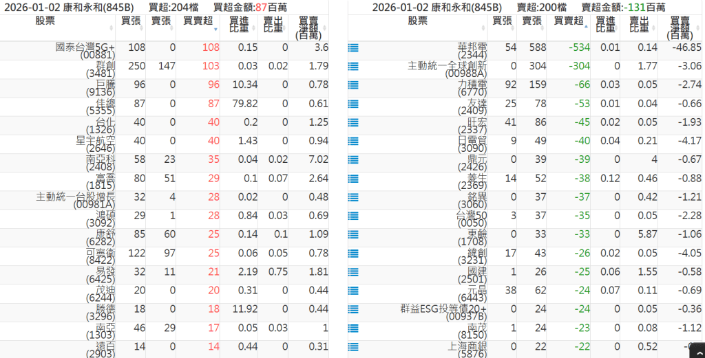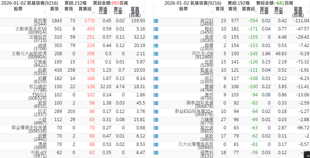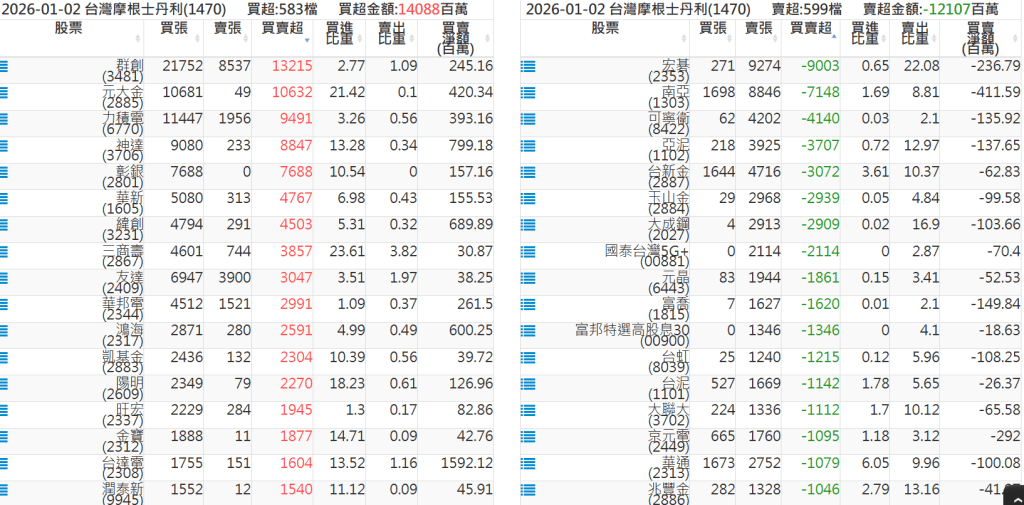 2026-0102關鍵券商買賣超 2026-01-02 股狗網小編 籌碼面每日資訊 發表留言 關鍵券商買賣超: 臺銀證券(1040): 台灣摩根士丹利(1470): 凱基台北(9268): 凱基信義(9216): 元大土城永寧(9875): 康和永和(845B) : 富邦建國(9658): 免責宣言 本網站文章所提供資訊僅供參考,並無任何推介買賣之意,投資人應自行承擔交易風險。 分享此文: 按一下即可分享至 X(在新視窗中開啟) X 按一下以分享至 Facebook(在新視窗中開啟) Facebook 喜歡 正在載入...