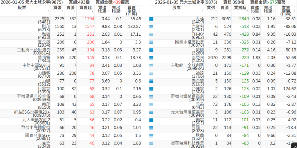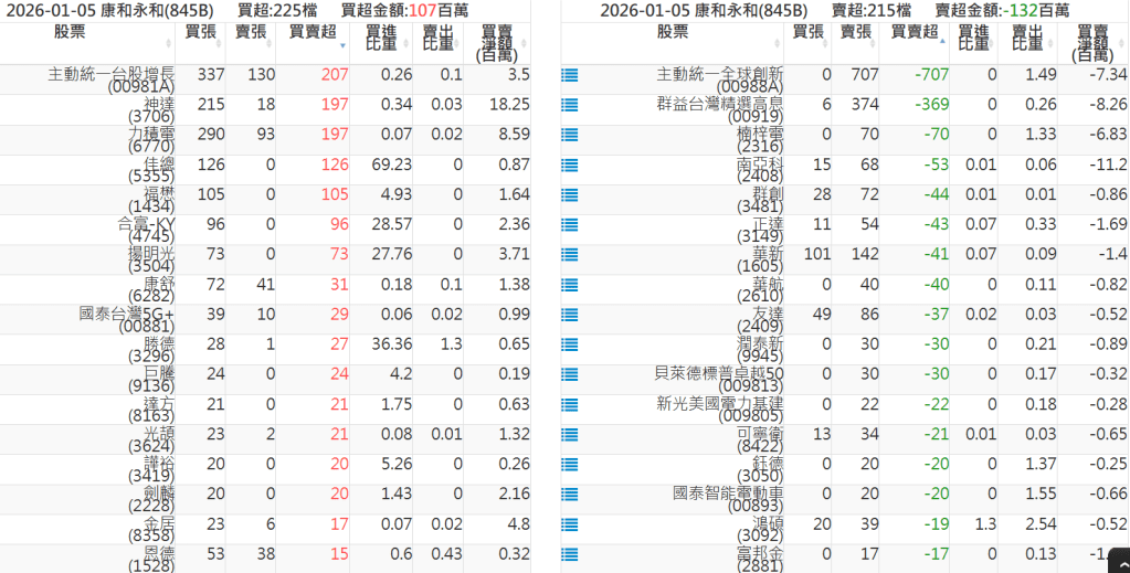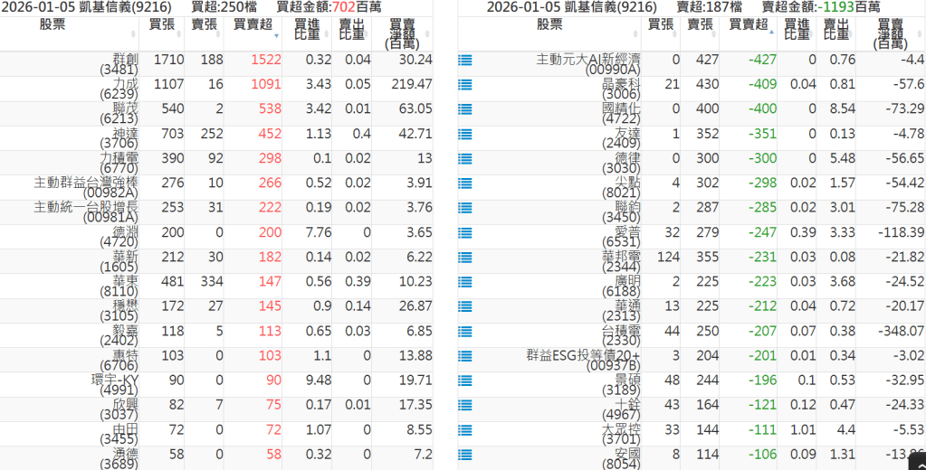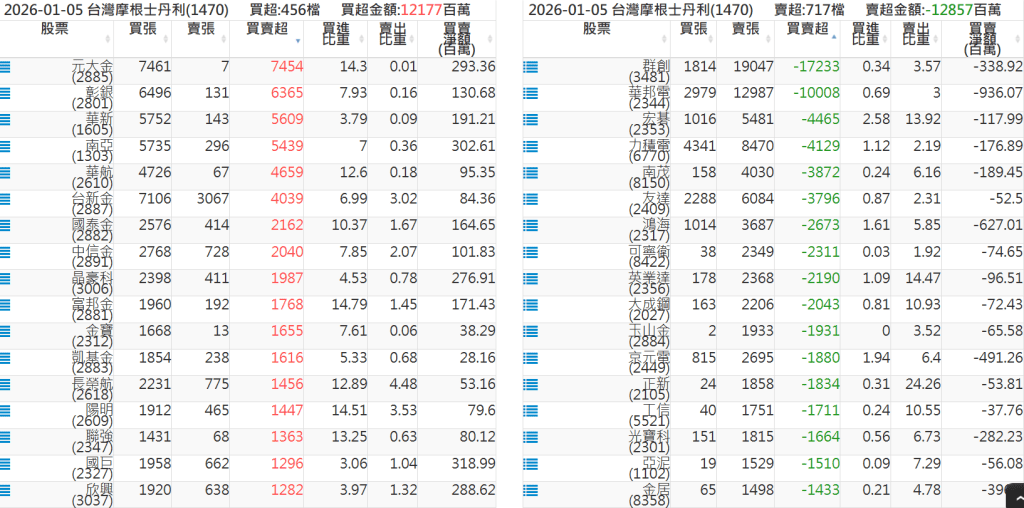 2026-0105關鍵券商買賣超 2026-01-05 股狗網小編 籌碼面每日資訊 發表留言 關鍵券商買賣超: 臺銀證券(1040): 台灣摩根士丹利(1470): 凱基台北(9268): 凱基信義(9216): 元大土城永寧(9875): 康和永和(845B) : 富邦建國(9658): 免責宣言 本網站文章所提供資訊僅供參考,並無任何推介買賣之意,投資人應自行承擔交易風險。 分享此文: 按一下即可分享至 X(在新視窗中開啟) X 按一下以分享至 Facebook(在新視窗中開啟) Facebook 喜歡 正在載入...