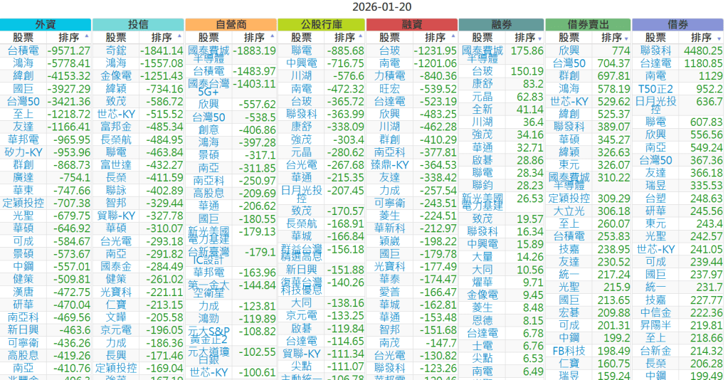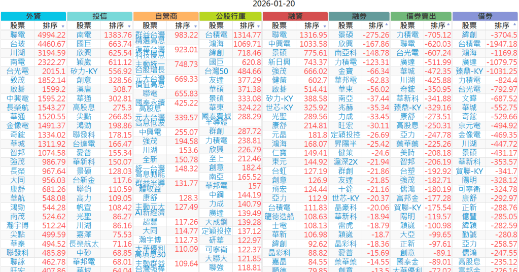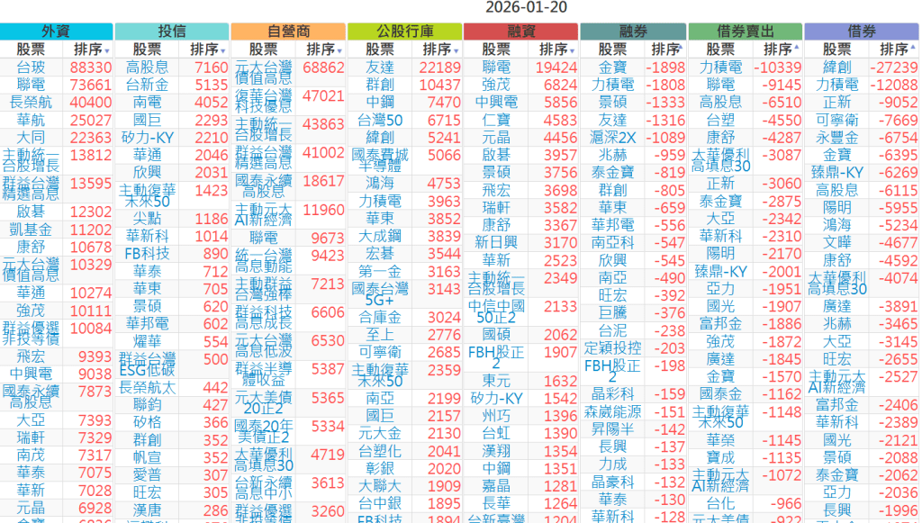 2026-0120【外資、投信】買賣超個股 2026-01-20 股狗網小編 投資誌-大盤 發表留言 上市:【外資、投信】買超(依金額) (單位:百萬) 上市:【外資、投信】賣超(依金額) (單位:百萬) 上市:【外資、投信】買超(依張數) (單位:張數) 上市:【外資、投信】賣超(依張數) (單位:張數) 免責宣言 本網站文章所提供資訊僅供參考,並無任何推介買賣之意,投資人應自行承擔交易風險。 分享此文: 分享到 X(在新視窗中開啟) X 分享到 Facebook(在新視窗中開啟) Facebook 喜歡 正在載入...
