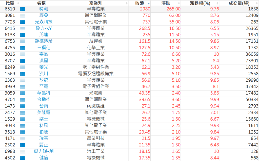 2026-0121日新高爆量上漲股 2026-01-21 股狗網小編 選股條件 發表留言 利用股狗選股的選股條件可以【挑選突破20日新高,爆量上漲起漲點股票】 1.股狗選股 https://www.stockdog.com.tw 2.選股條件: a.收盤價創20日新高 b.當日漲幅 > 2% C.成交量大於5日均量2倍 免責宣言 本網站文章所提供資訊僅供參考,並無任何推介買賣之意,投資人應自行承擔交易風險。 分享此文: 分享到 X(在新視窗中開啟) X 分享到 Facebook(在新視窗中開啟) Facebook 喜歡 正在載入...