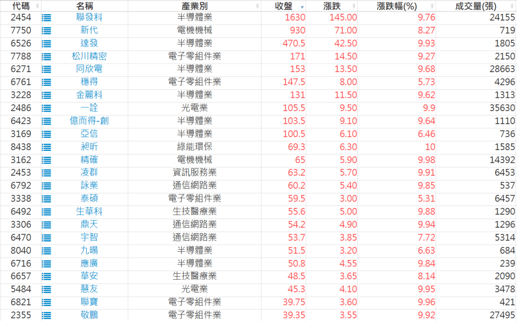 2026-0123日新高爆量上漲股 2026-01-23 股狗網小編 選股條件 發表留言 利用股狗選股的選股條件可以【挑選突破20日新高,爆量上漲起漲點股票】 1.股狗選股 https://www.stockdog.com.tw 2.選股條件: a.收盤價創20日新高 b.當日漲幅 > 2% C.成交量大於5日均量2倍 免責宣言 本網站文章所提供資訊僅供參考,並無任何推介買賣之意,投資人應自行承擔交易風險。 分享此文: 分享到 X(在新視窗中開啟) X 分享到 Facebook(在新視窗中開啟) Facebook 喜歡 正在載入...