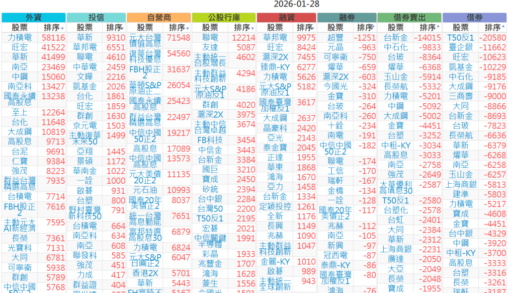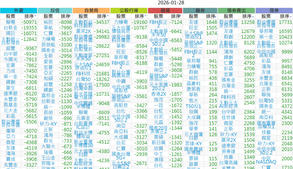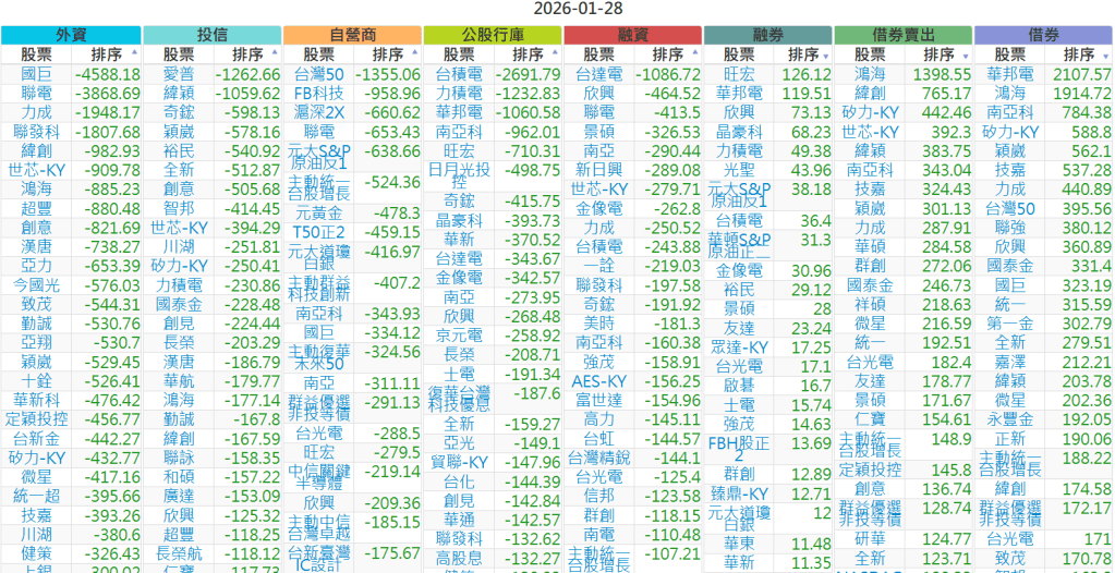 2026-0128【外資、投信】買賣超個股 2026-01-28 股狗網小編 投資誌-大盤 發表留言 上市:【外資、投信】買超(依金額) (單位:百萬) 上市:【外資、投信】賣超(依金額) (單位:百萬) 上市:【外資、投信】買超(依張數) (單位:張數) 上市:【外資、投信】賣超(依張數) (單位:張數) 免責宣言 本網站文章所提供資訊僅供參考,並無任何推介買賣之意,投資人應自行承擔交易風險。 分享此文: 分享到 X(在新視窗中開啟) X 分享到 Facebook(在新視窗中開啟) Facebook 喜歡 正在載入...