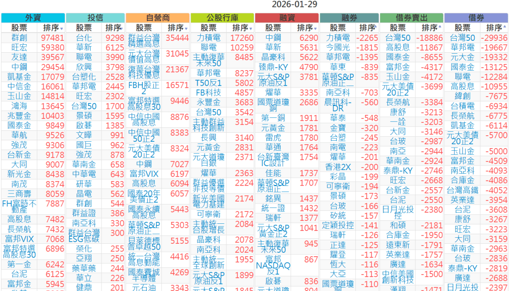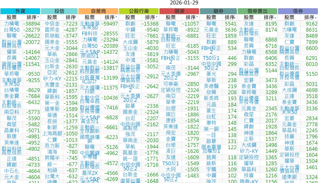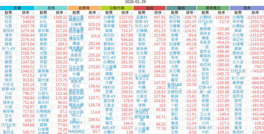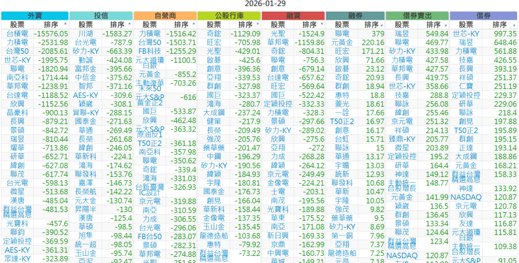 2026-0129【外資、投信】買賣超個股 2026-01-29 股狗網小編 投資誌-大盤 發表留言 上市:【外資、投信】買超(依金額) (單位:百萬) 上市:【外資、投信】賣超(依金額) (單位:百萬) 上市:【外資、投信】買超(依張數) (單位:張數) 上市:【外資、投信】賣超(依張數) (單位:張數) 免責宣言 本網站文章所提供資訊僅供參考,並無任何推介買賣之意,投資人應自行承擔交易風險。 分享此文: 分享到 X(在新視窗中開啟) X 分享到 Facebook(在新視窗中開啟) Facebook 喜歡 正在載入...