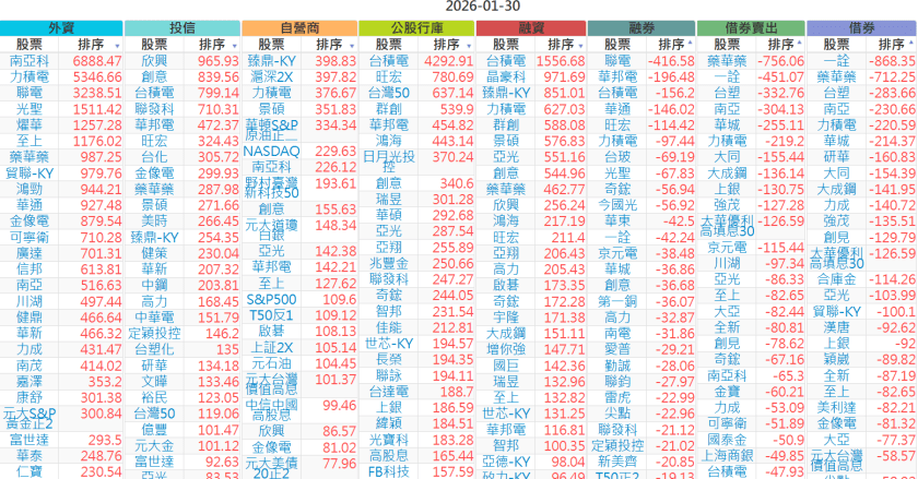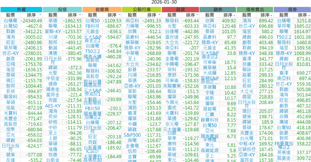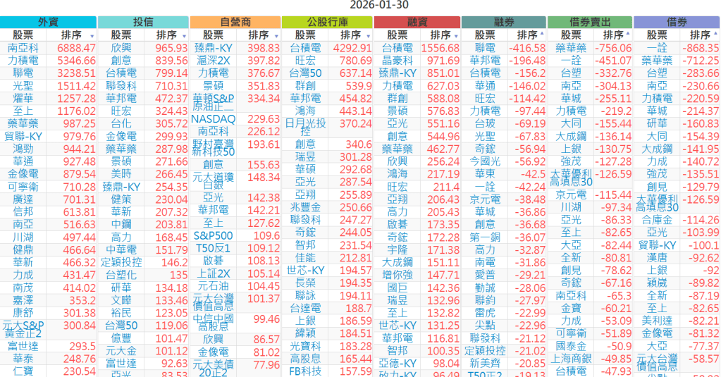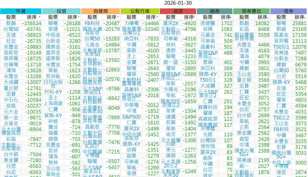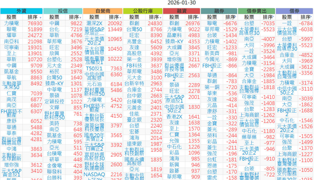 2026-0130【外資、投信】買賣超個股 2026-01-30 股狗網小編 投資誌-大盤 發表留言 上市:【外資、投信】買超(依金額) (單位:百萬) 上市:【外資、投信】賣超(依金額) (單位:百萬) 上市:【外資、投信】買超(依張數) (單位:張數) 上市:【外資、投信】賣超(依張數) (單位:張數) 免責宣言 本網站文章所提供資訊僅供參考,並無任何推介買賣之意,投資人應自行承擔交易風險。 分享此文: 分享到 X(在新視窗中開啟) X 分享到 Facebook(在新視窗中開啟) Facebook 喜歡 正在載入...