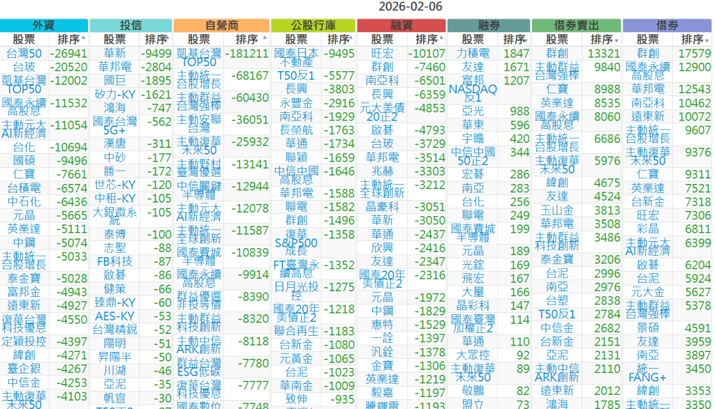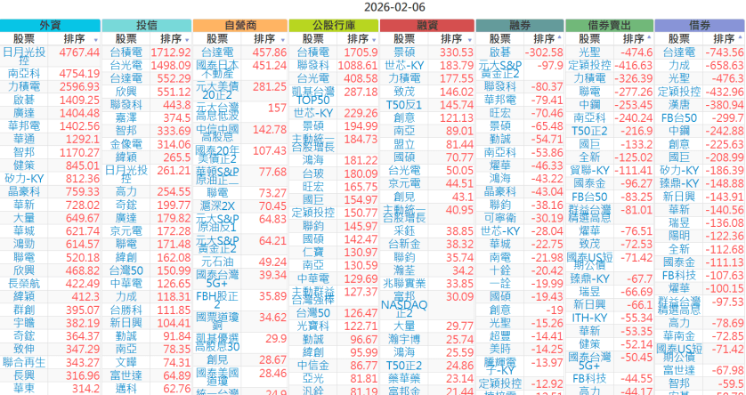 2026-0206【外資、投信】買賣超個股 2026-02-07 股狗網小編 投資誌-大盤 發表留言 上市:【外資、投信】買超(依金額) (單位:百萬) 上市:【外資、投信】賣超(依金額) (單位:百萬) 上市:【外資、投信】買超(依張數) (單位:張數) 上市:【外資、投信】賣超(依張數) (單位:張數) 免責宣言 本網站文章所提供資訊僅供參考,並無任何推介買賣之意,投資人應自行承擔交易風險。 分享此文: 分享到 X(在新視窗中開啟) X 分享到 Facebook(在新視窗中開啟) Facebook 喜歡 正在載入...