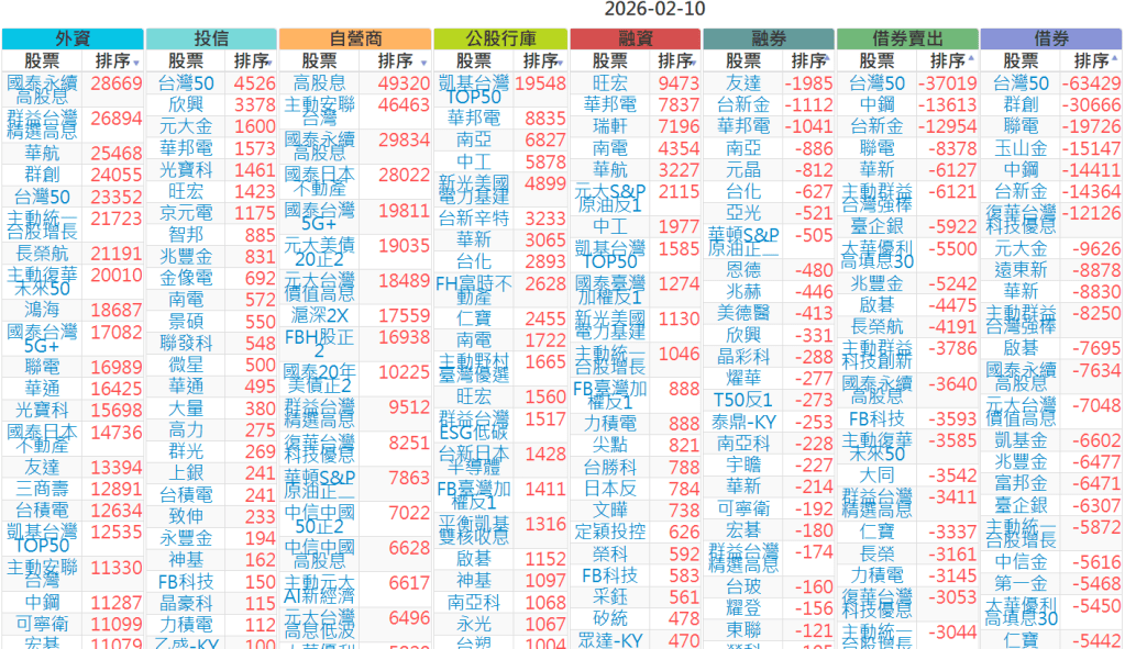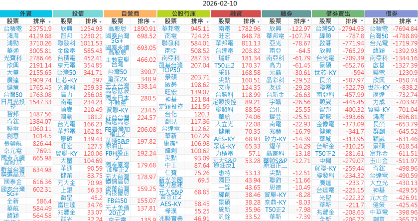 2026-0210【外資、投信】買賣超個股 2026-02-10 股狗網小編 投資誌-大盤 發表留言 上市:【外資、投信】買超(依金額) (單位:百萬) 上市:【外資、投信】賣超(依金額) (單位:百萬) 上市:【外資、投信】買超(依張數) (單位:張數) 上市:【外資、投信】賣超(依張數) (單位:張數) 免責宣言 本網站文章所提供資訊僅供參考,並無任何推介買賣之意,投資人應自行承擔交易風險。 分享此文: 分享到 X(在新視窗中開啟) X 分享到 Facebook(在新視窗中開啟) Facebook 喜歡 正在載入...